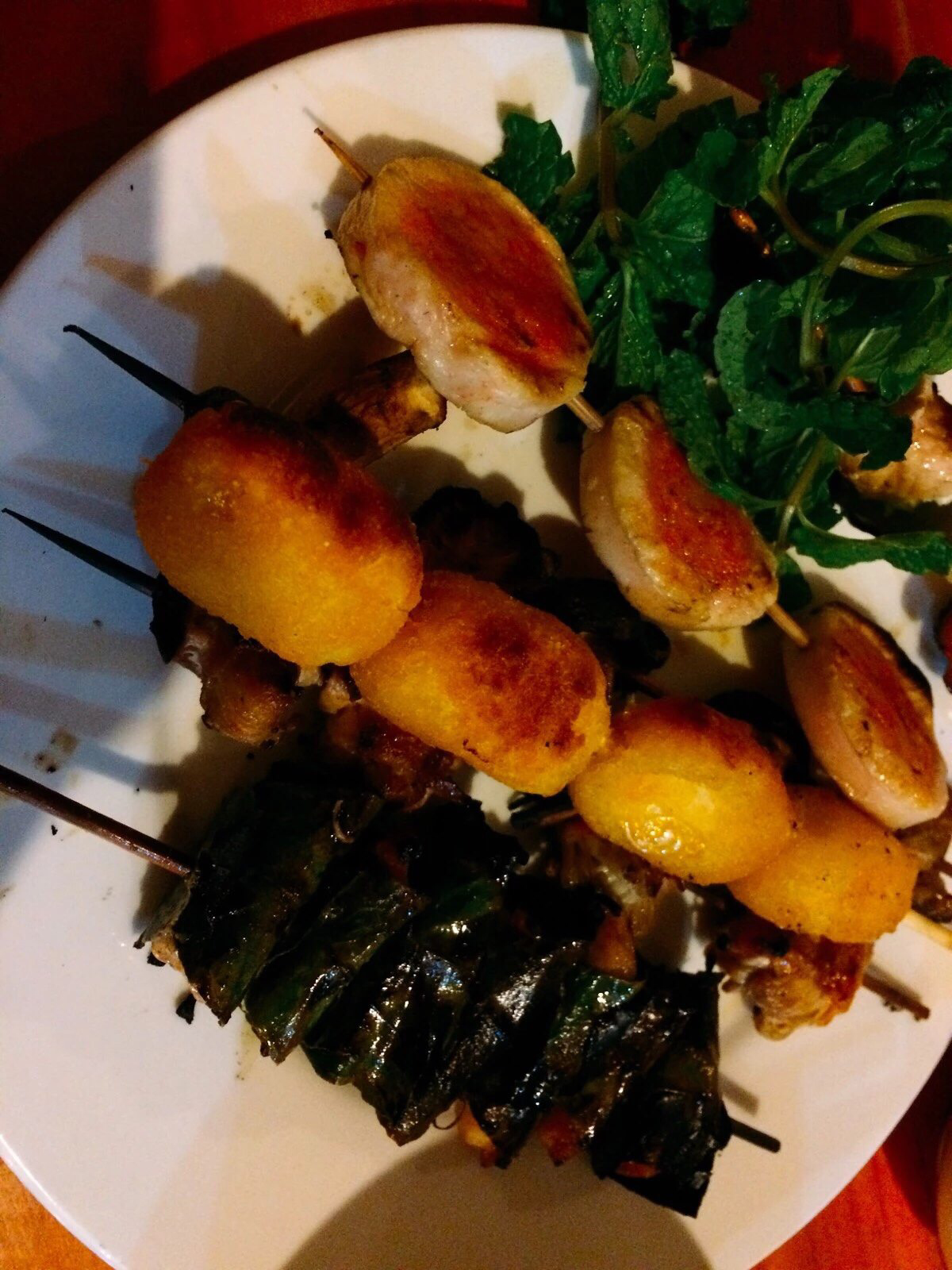 하는 수 없이 우리는 번듯한 가게로 들어갔다. 잘 정리되어진 여러 꼬치들을 바라보며 못 까이(1개), 하이 까이(2개)를 말했다. 맛있어 보이는 꼬치들을 고르고 가게 안으로 들어갔다. 역시 꼬치에는 맥주였기에 병맥주를 시켜놓고 꼬치가 나오기를 10여분 기다렸다.