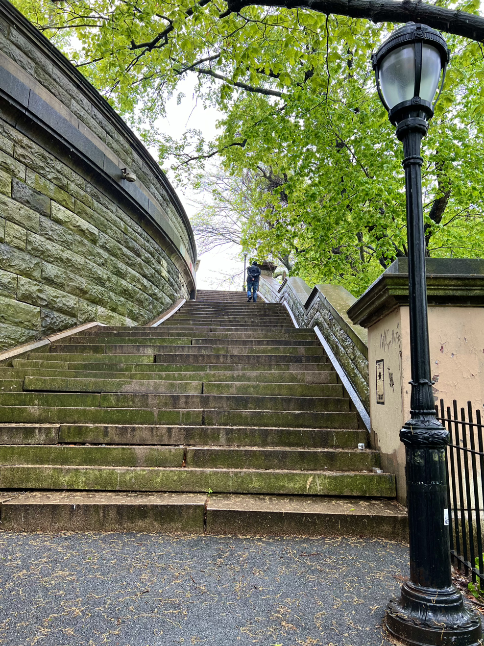 만나자마자 통성명만 하고 곧바로 커피를 사들고 기초 훈련을 시작한다면서 영화 "기생충"에나 나올법한 악마의 계단으로 나를 데려갔다. 이 계단을 반복해서 올리 뛰고 내리뛰고 땀에 옷이 젖을 무렵 암벽등반을 이제 시작한다면서 센터 앞까지 또 뛰어서 도착했다.