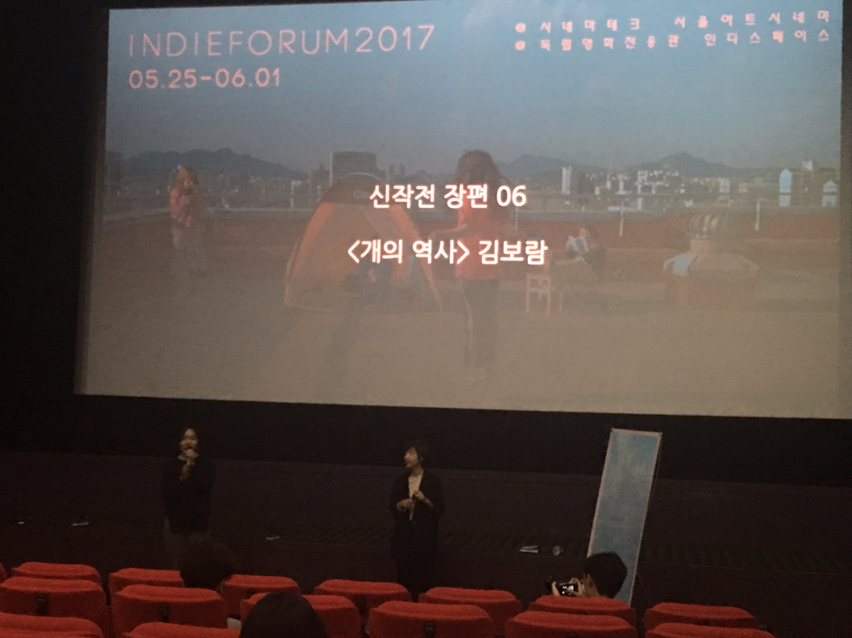 김보람은 전작 <결혼전.투>와 <독립의 조건>을 통해 자신과 자신을 감싸고 있는 환경에 대한 이야기를 그렸다. '결혼 적령기'에 놓인 자신, 그리고 집을 나와 '독립'을 하게 된 자신. 김보람의 첫 장편 다큐 <개의 역사> 역시 감독 자신에 대한 이야기지만, 이야기는 자신을 중심에 놓으면서도 확장한다. 그 방식은 처음 접하는 순간 마치 손경화의 <의자가 되는 법>처럼 연상에 기반을 둔 확장처럼 느껴진다.