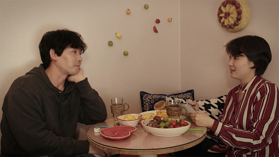 홍보 자체는 가영이 진혁에게 던지는 성적인 말에 초점을 맞추지만, 사실 이 영화의 핵심은 핑퐁처럼 쉴 틈 없이 주고 받는 말 속에서 자연스레 드러나는 구도입니다. ‘영화 감독’과 ‘취재 대상’의 상하 관계를 바탕으로 가영은 ‘한국 남자’들이 주로 할 법한 성적인 어필을 진혁에게 하지만, 어느 순간부터는 진혁이 이를 계속 회피하며 어렵게 만든 상하의 구도가 해체되기 시작합니다. 현실에서 볼 법한 여-남의 관계처럼 쉽게 균형추가 한 쪽에게 쏠리는 구도가 다시 재현되죠. 마치 이전에 만든 장편이었던 <비치온더비치>에서 주인공이 맞이했던 길처럼, 아무리 여자가 ‘비치’가 될지라도 결말은 남성들을 위한 성적 익스플로이테이션이 되는 것이 아니라 서서히 숨겨진 성차가 드러나는 방향으로 흐릅니다.