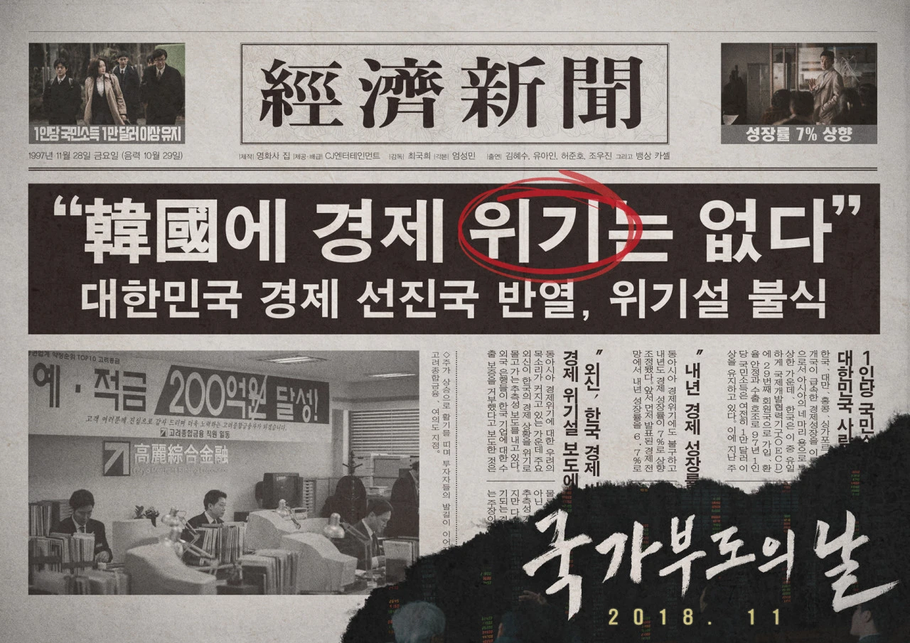 애초에 왜 최국희가 다시 한 번 <스플릿> 같은 스릴러 장르를 만들지 못하고, 단 한 번도 전문적인 데이터가 필요한 영화를 손 대지 않은 채 <마스터>나 <골든 슬럼버>를 만든 제작사가 이런 영화를 만들고 다시 흥행해야 하는 걸까요. 이 영화가 어찌보면 한국 영화의 어떤 현실입니다. ‘국가부도의 날’을 제대로 보기 위해 만든 게 아니라, 어떤 의미로는 이 영화가 2018년 한국 영화에 발생한 위기와 빈곤함을 감추고 있는 것일지도 모릅니다.