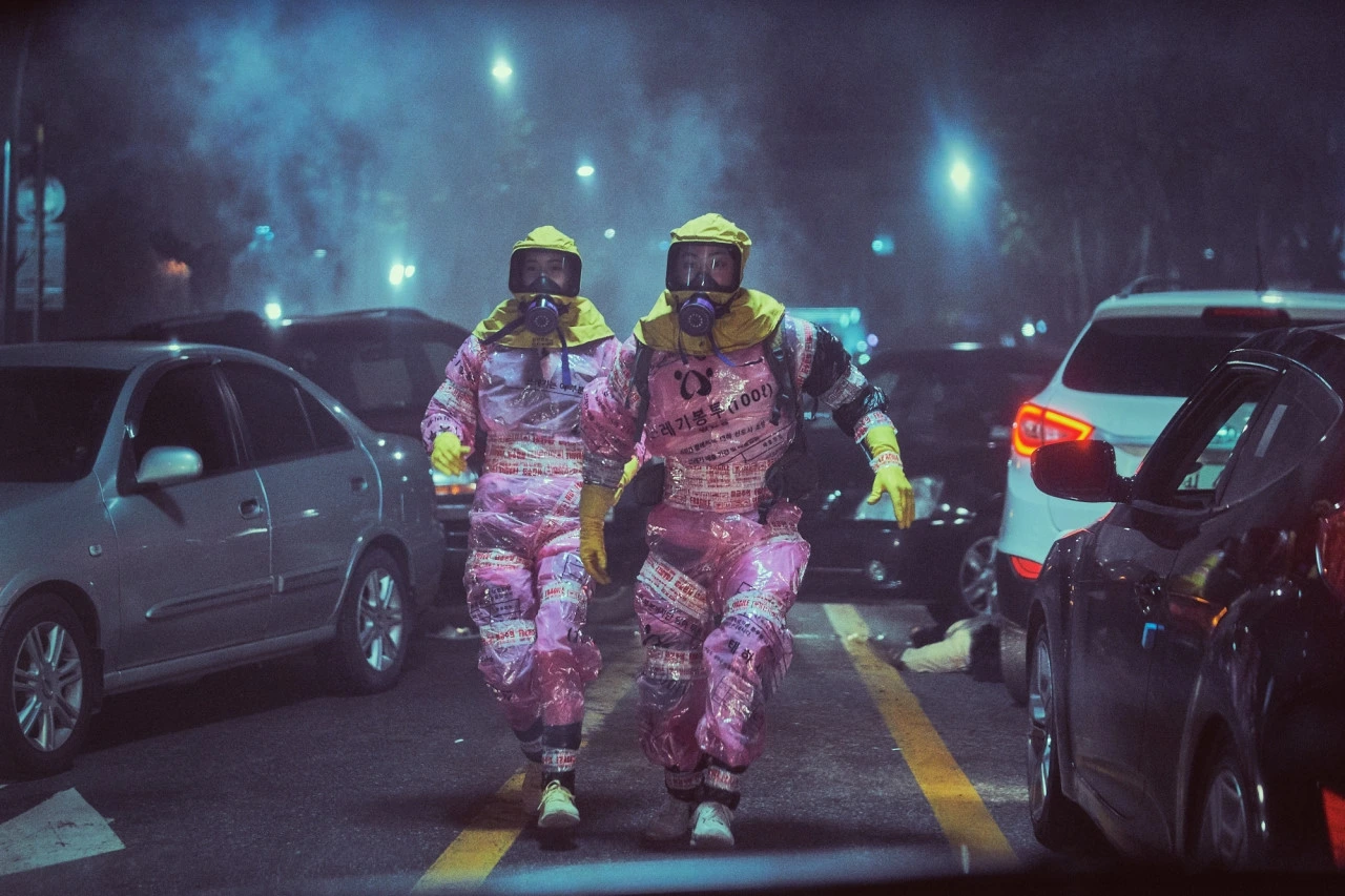 하지만 본격적인 사건의 발단이 일어나는 순간부터 영화는 싹 분위기를 바꿉니다. 영화 속의 재난은 여러모로 마치 일본의 사린 가스 테러나 ‘외로운 늑대’(lone wolf)가 저지른 각종 무차별적 테러 등 여러 실제 사건에서 따온 구석이 많고, 일부러 과장된 효과를 주지 않아도 발단-확산 장면 자체만으로도 꽤나 몰입감을 줍니다. 재난이 본격적으로 주인공이 있는 곳을 덮치며 영화는 코믹한 요소는 최대한으로 줄이고, 주인공들이 지닌 액션과 맥락의 요소를 적절히 활용하려 나섭니다. 이런 와중에서도 한국 영화가 습관적으로 반복한 코미디 컨벤션이나 신파적인 장면이 잠시 눈살을 찌푸리게 해도, 최대한 영화는 그 장면을 최소한으로 줄이며 지금 닥친 재난에만 초점을 주며 기울이려 애씁니다.