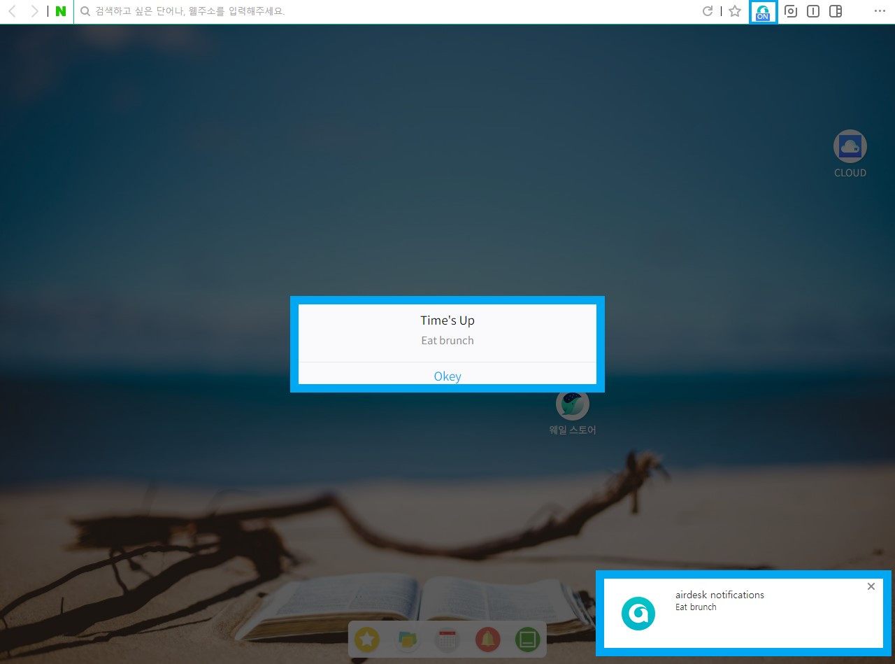 에어데스크를 끈 상태에선 작동되지 않습니다. 당연한 이야기지만 브라우저가 꺼져있어도 작동되지 않습니다. 중요한 알람을 쓰는 용도로 적합하지 않고, 간단하게 켜두는 용도로 사용해주세요.