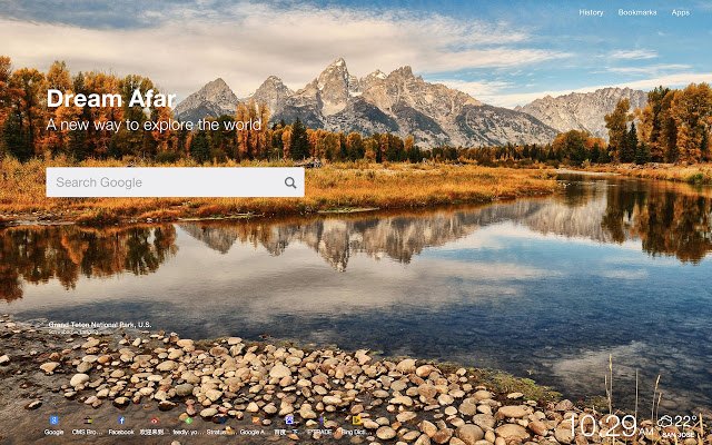 드림 어팔(또는 아팔?)이란 앱은 크롬의 기본 새 탭을 그대로 리디자인한듯한 모습입니다. 검색창이 똭 있고, 우측 상단에 히스토리, 북마크, 앱스로 진행하는 작은 버튼이 있습니다. 하단에는 자주 가는 사이트가 있어서 기존의 자주 가는 사이트 기능을 쓸 수 있어 편리합니다. 그 뿐 아니라 배경도 멋지고 현재시간을 보여주고, 날씨도 보여주는게 멋져보입니다. 제가 만약 이 앱을 만드는 사람이었다면 모멘텀의 기능인 오늘 할일 같이 사용자가 하루하루 쓸 수 있는 무언가를 두면 어떨까 싶습니다. 그것 하나만 해도 더 많은 사용자가 사용할 것 같습니다.