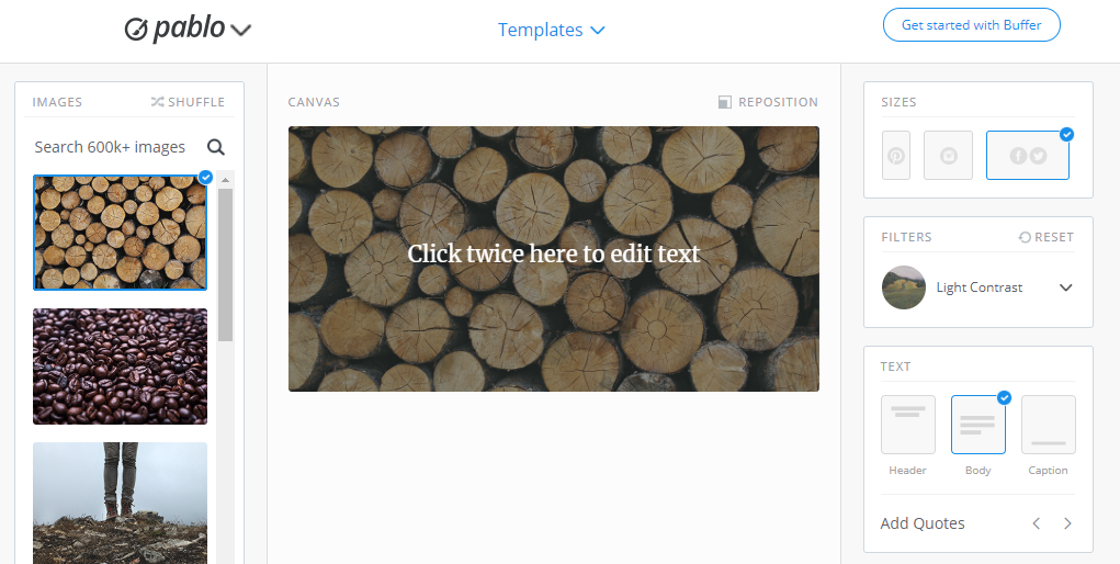 Pablo는 멋진 이미지에 텍스트를 넣어야할 때 사용하세요. 이미지 필터를 통해서 글씨가 잘 보이도록 설정하고, 텍스트를 멋지게 표시할 수 있습니다. Pablo에서 만든 이미지는 홈페이지의 히어로 페이지나 랜딩 페이지의 메인 이미지 등 다양하게 사용하실 수 있을겁니다.