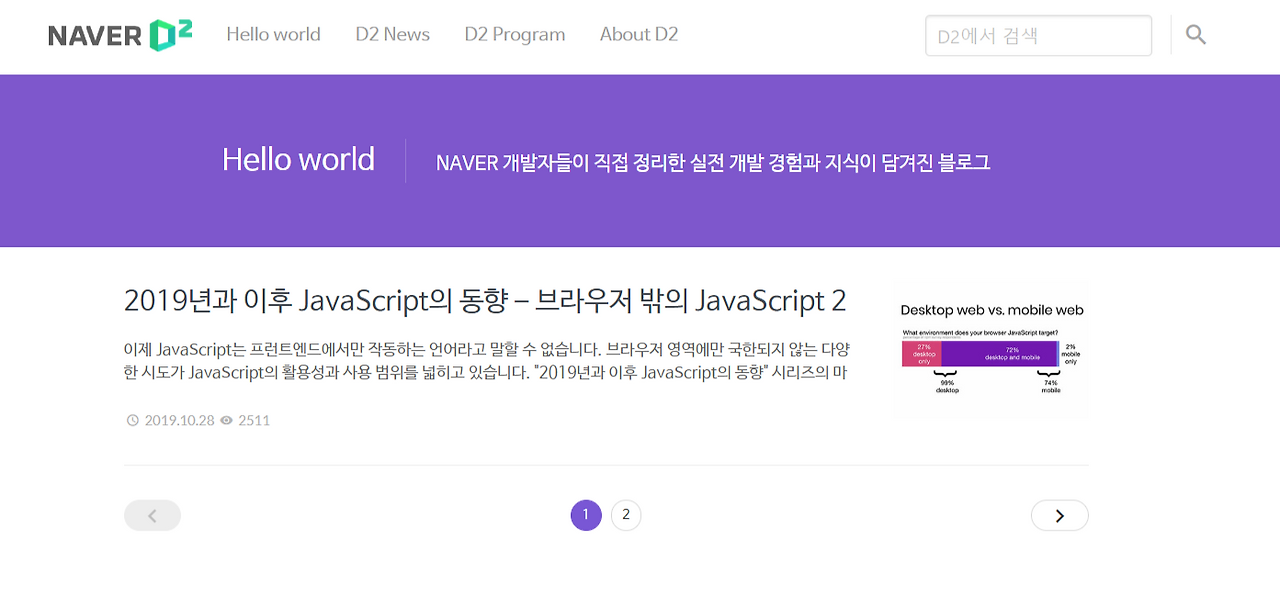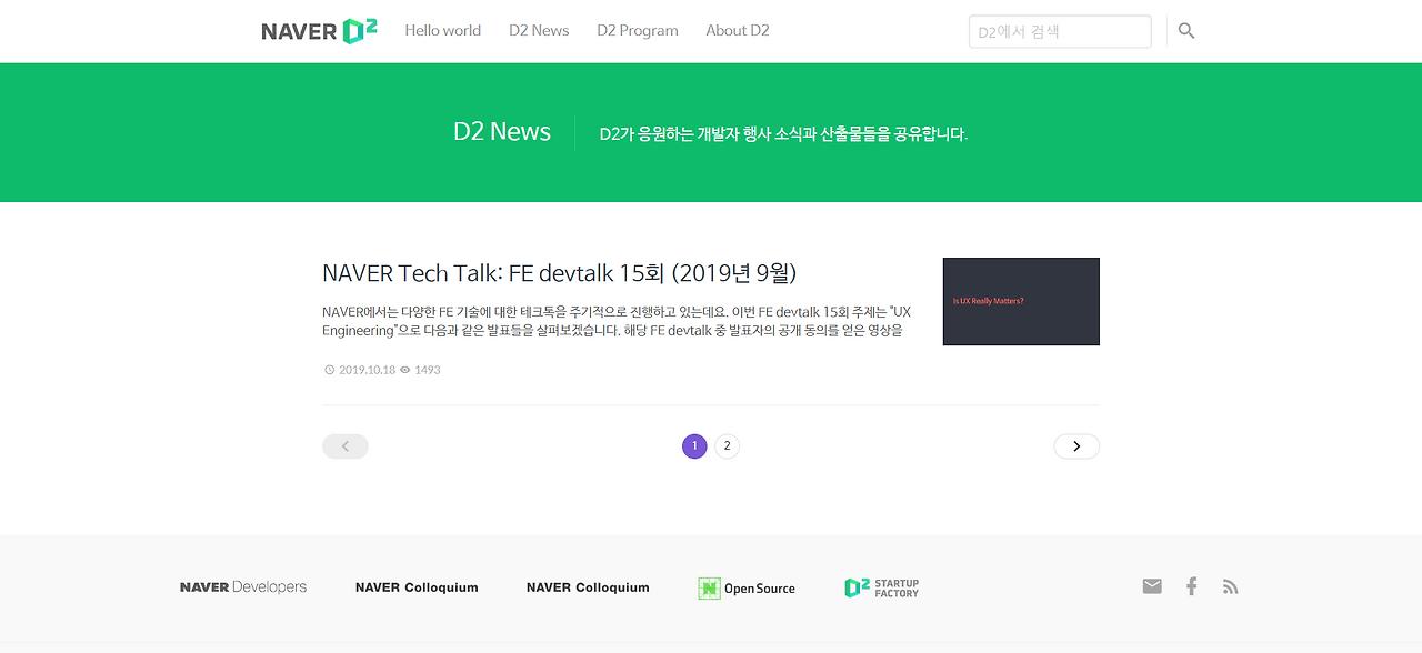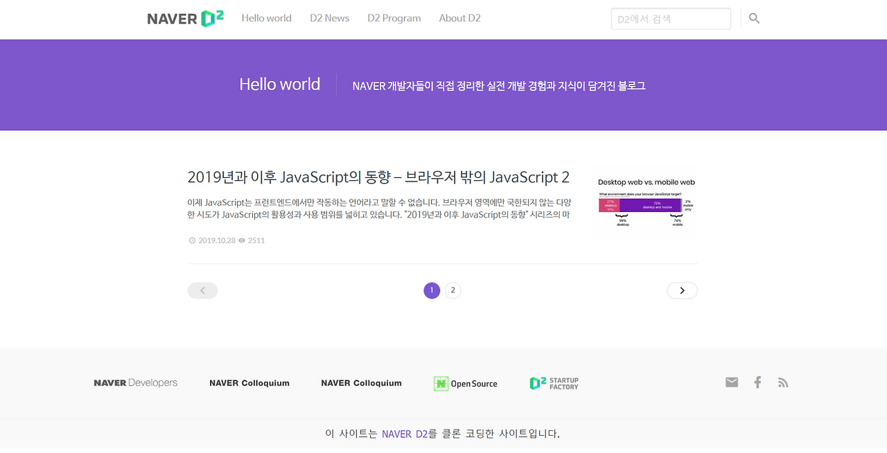 총 5~6시간 정도 걸려서 네이버 D2를 만들어봤습니다. 빠진 부분도 많이 있는데 모바일 최적화나 검색 결과창 등은 나중에 생각나면 해보겠습니다.
