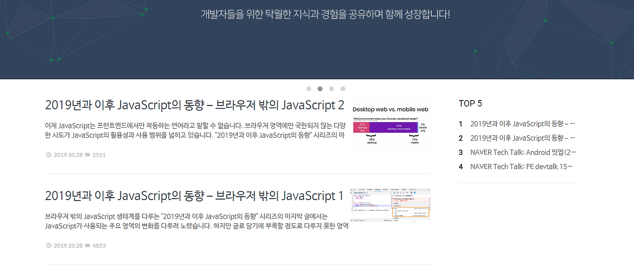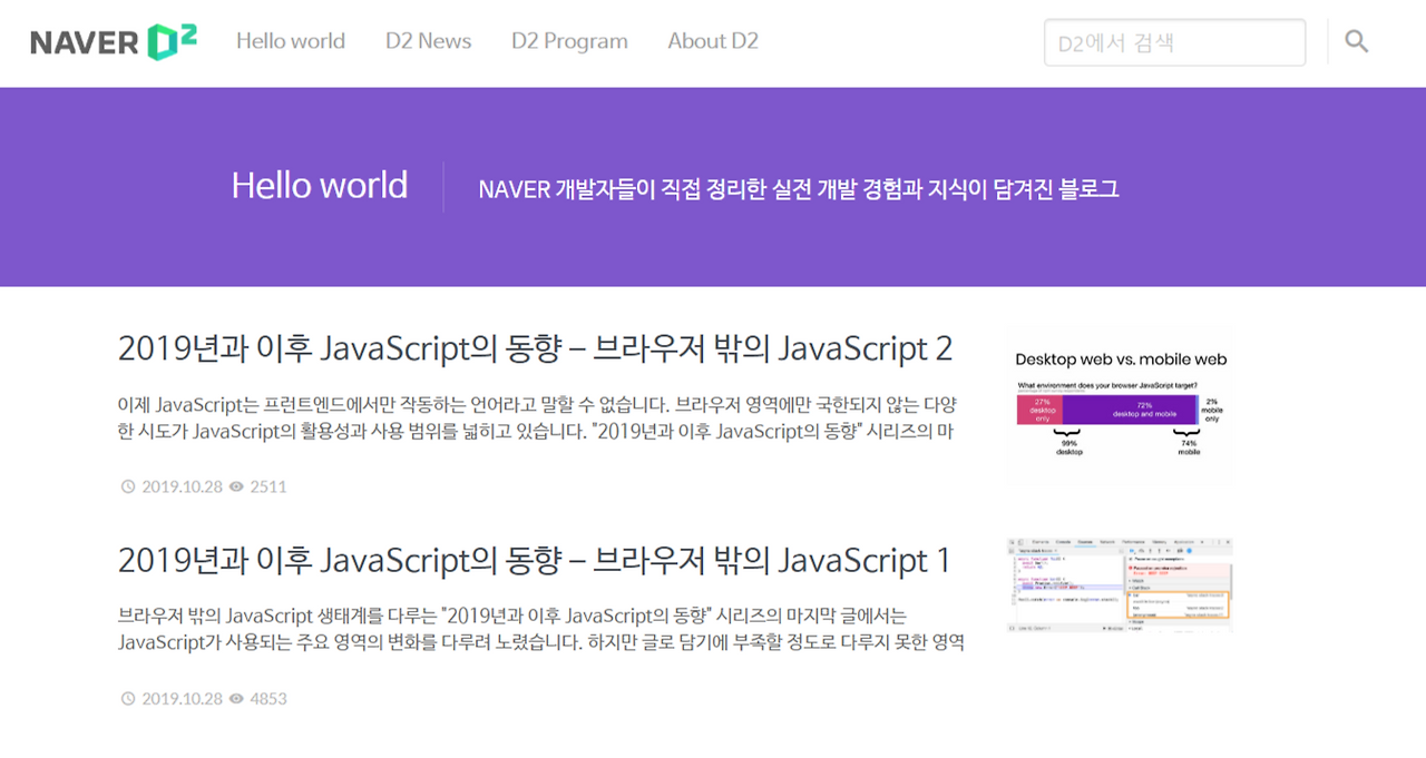 카페에서 글을 읽고 있었습니다. 네이버 D2에 올라온 javascript 동향이라는 글입니다. 이 글을 이미 여러번 읽었고, 리마인드겸 읽어보는거라 무척이나 딴생각이 많이 났습니다.(대충 읽었다는 뜻입니다) 딴생각은 꼬리의 꼬리를 물어 이 사이트를 통째로 하루만에 카피하면 어떨까에 이르렀고, 클론 코딩을 시작해보게 됐습니다.