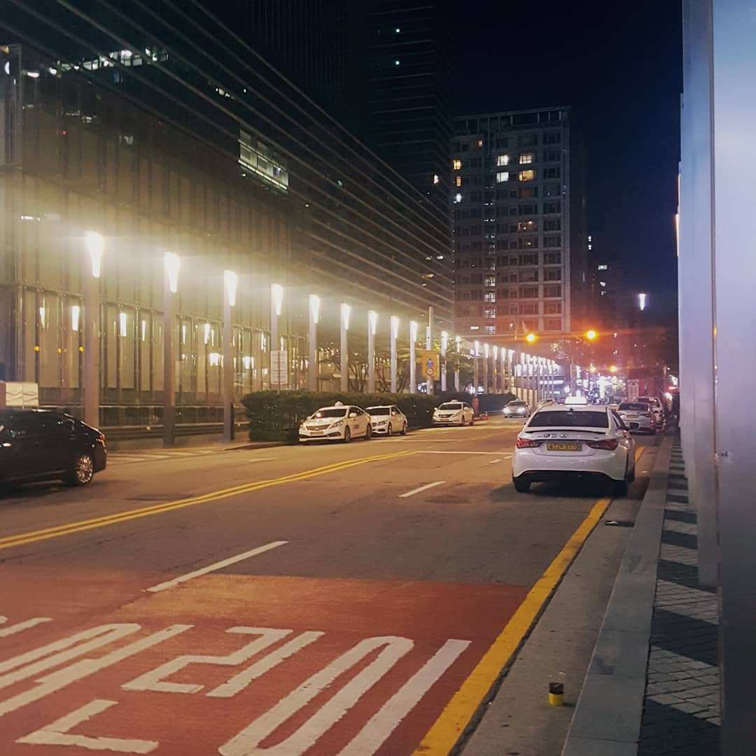 강남역 4거리의 복잡함과 그 많은 시위들도 이 시간이면 조용해진다. 강남역 8번 출구 앞 서초 삼성 타운의 가로등을 아름답게 빛난다. 이곳에서도 나처럼 아무도 없을 때까지 일하는 누군가가 있겠지.
