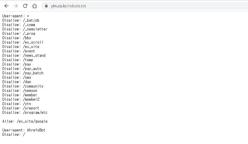 크롤러는 검색엔진에서 주로 사용되는 데이터 수집기이다. 지금도 구글, 네이버, 다음 등의 서비스는 검색 결과를 제공하기 위해 수많은 웹사이트를 로봇이 돌아다니며 데이터를 수집하고 있다. 크롤러를 개발할 때는 해당 사이트가 데이터 수집을 허용하는지 아닌지가 중요하다. 그래서 크롤러 대상 사이트 목록을 정하고 해당 사이트의 크롤링 정책을 확인했다.