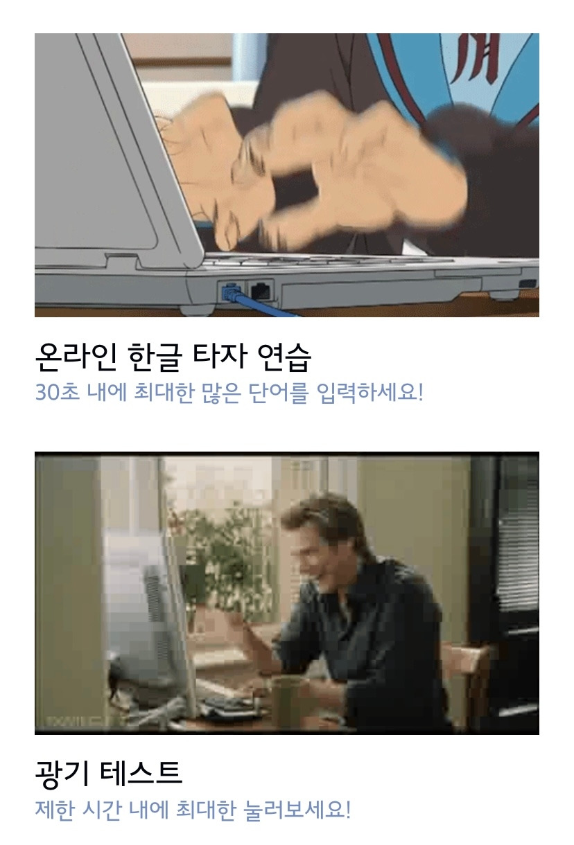 제가 더 놀랐던 건 온라인 타자연습입니다. 이건 일반 타자연습보다 어렵고, 단어를 보고 맞춰서 타이핑해야 합니다. 제 지식으로는 타이핑 메크로는 없는데 그 어려운걸 누군가 해냈습니다.