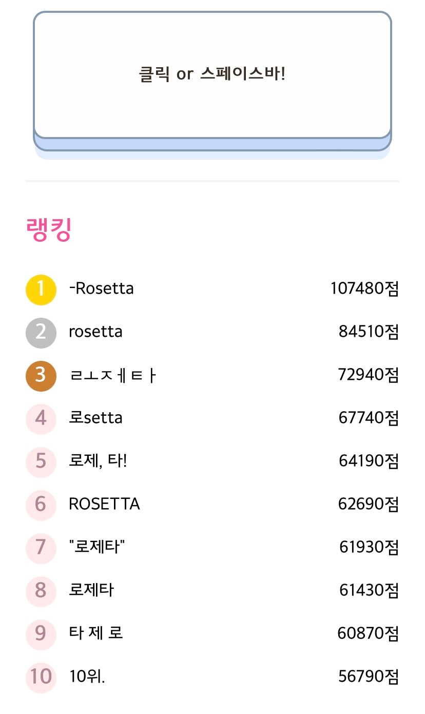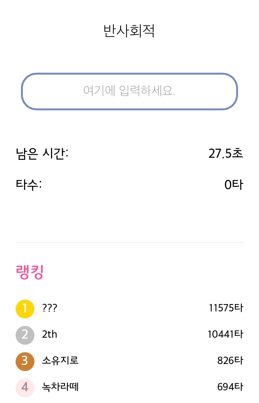 다른 프로젝트들과는 다르게 랭킹을 등록할 수 있어서 나름 도전할 맛이 나는데 그래서인지 처음엔 인간 레벨에서 얻을 수 있는 점수들이 많았습니다. 가령 타자연습게임에선 300-600타 정도를 치는 겁니다.