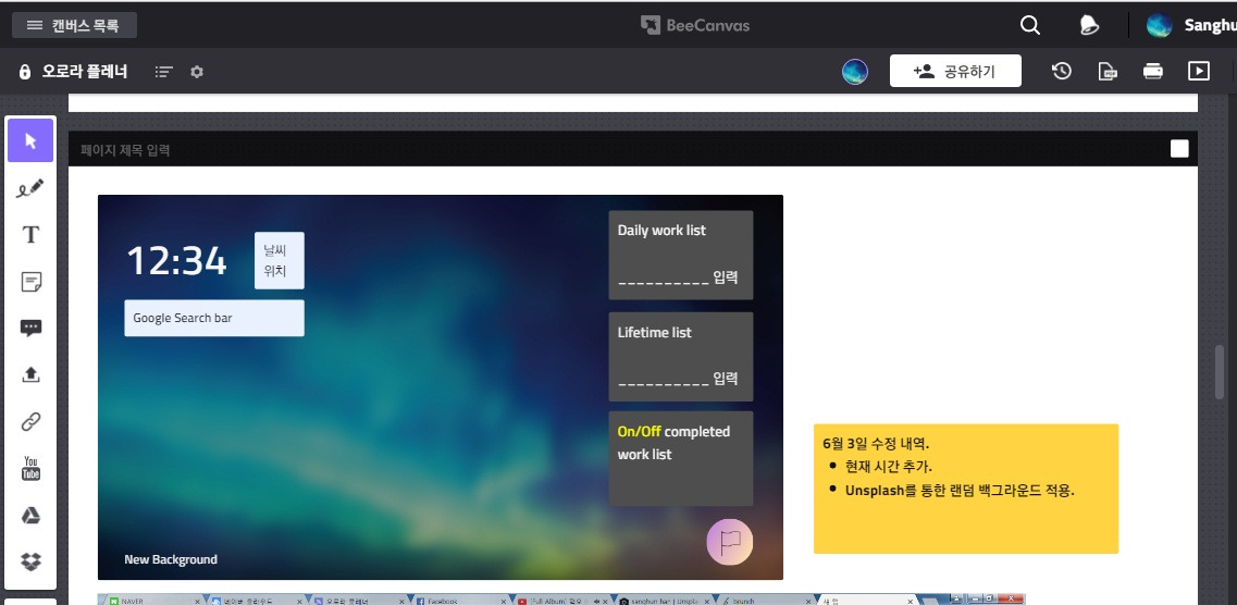아이디어를 캔버스에 올린 후에 실제 작업을 들어갔습니다.