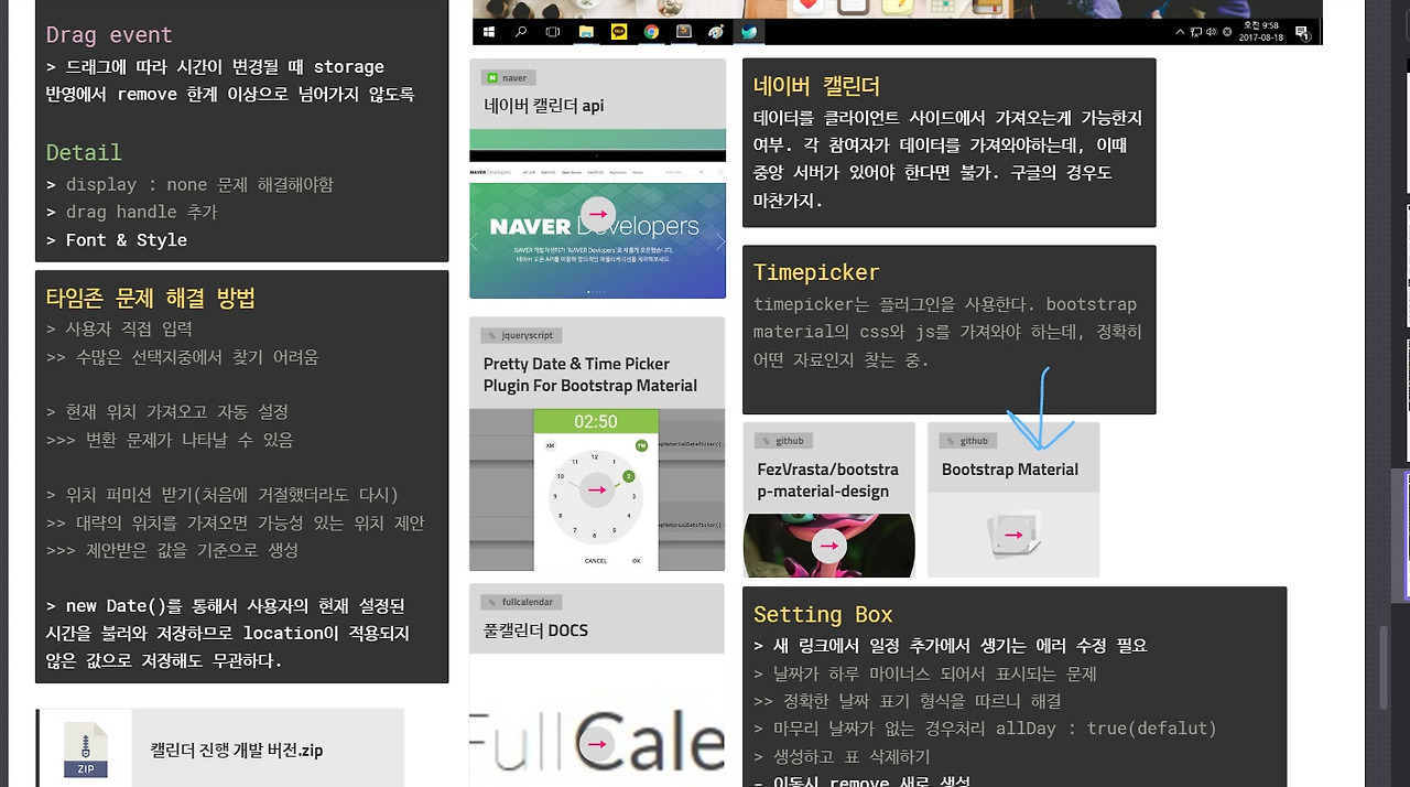 네이버 캘린더와 연동도 준비중입니다. 정확히 읽어보진 않았지만 클라이언트 사이드에서만 구현하는 것은 아직 해답을 못찾았습니다. 네이버 캘린더 문서를 살펴봐도 node.js 바탕으로 설명이 되어있는데, 이것을 크롬 확장프로그램에서 사용하려면 저희가 서버를 따로 제공해서 데이터를 전송해주어야 할 것 같습니다.