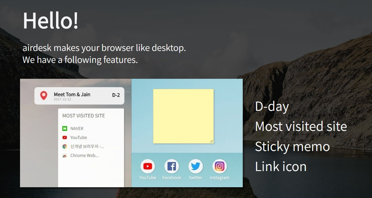 에어데스크는 사실 많은 기능이 있습니다. 디데이, 자주 가는 페이지, 메모, 링크 아이콘은 대표적인 기능입니다만 일부분입니다. 만약 에어데스크를 쓰시면서 이 기능을 모르셨다면 죄송하다는 말씀을 드립니다. 더 친절한 UI를 만들지 못한 책임입니다.