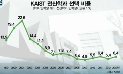 닷컴 버블이 터지면서, 학생들의 전공 선택과정에서도 컴퓨터학과가 외면받으면서 점점 비인기학과가 되어갑니다. 그 당시에 'Daum'에 CTO로 있었던 제게도 개발팀장들이 컴퓨터학과 졸업생을 신입사원으로 뽑으려니 원하는 실력을 제대로 갖춘 인력이 부족하다는 하소연들이 많이 들렸습니다. (물론 그 와중에도 컴퓨터를 정말 좋아해서 컴퓨터학과를 간 소수 실력파들은 예외지만요.) 심지어 지인인 과후배 한 명은 과외 아르바이트를 하던 중, 담당한 학생이 컴퓨터에 관심이 많아 컴퓨터 관련 학과를 가보라고 권유했다가 학생 부모님에게 잘리기도 하였습니다.