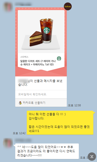 감사하다며 기프트콘도 보내주시고