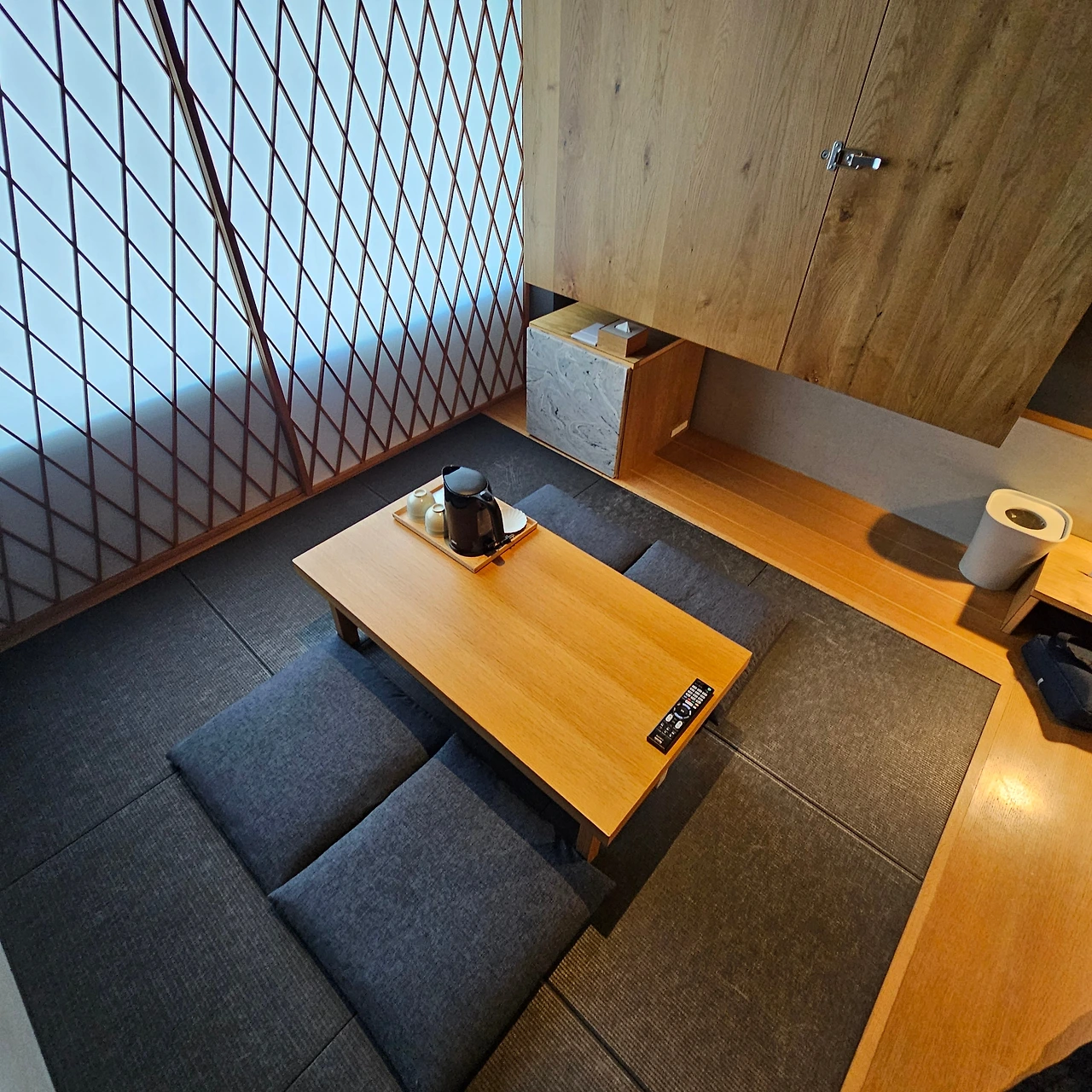 [더 셰어호텔 쿠무 가나자와] 가나자와 시내 위치한 쿠무 호텔은 오피스 건물을 호텔로 개조한 호텔이다. 객실에서 건너편 건물과 뷰가 간섭되는 것을 다다미 방에 어울리는 전통 창호로 극복했다