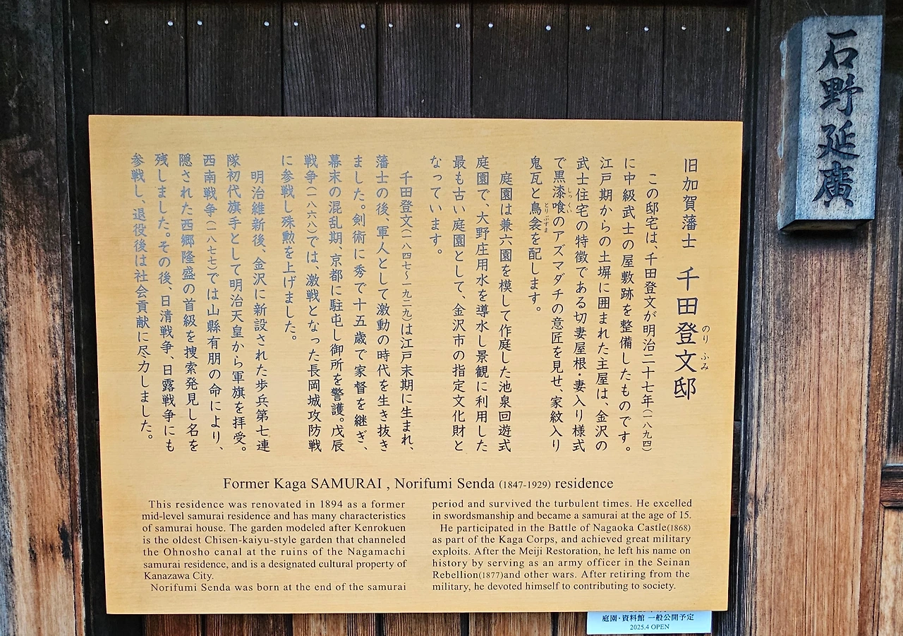 잘 보존된 무사주거지 거리 - 집주인 구 카가번 사무라이 "센다 노미후미" 일대기