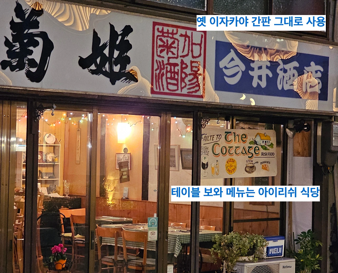 이전 이자카야 간판 그대로 서양인(아마 아일랜드 국적) 오너셰프가 운영하는 [아이리쉬 식당]을 지나치다. 일본에 정착해 살기 위해, 돈을 벌기 위해서 불완전하지만 시도하는 모습에 큰 영감을 받았다