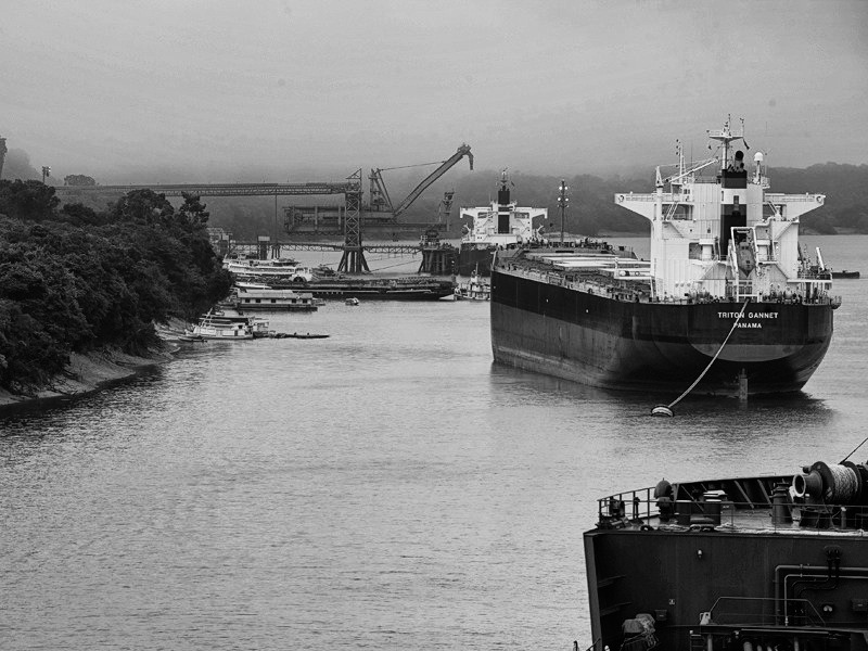 조류가 강하지는 않으나 양안의 폭이 좁아 통항하는 배의 통행을 막을 수 있으므로 우현 앵커를 놓고 Stern Line을 Mooring Buoy에 내어(사진 참조) 고정시킨다. 모두 세 척의 Panamax size의 배들이 대기 가능하다.