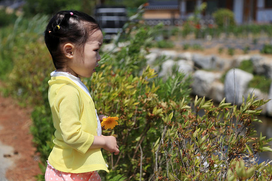 아침에 일찍 깨서 아이가 새근새근 자는 모습을 봤다. 잠자리가 바뀌어도 까탈 부리지 않고 편안하게 잠든 모습을 보니 감사했다. 천사 같던 아이 자던 모습을 언제부턴가 게을리 바라봤다. 아이가 눈을 뜨자마자 이불 김밥 놀이를 했다. 아이를 이불에 씌우며 "뿅 나타났다~ 뿅 사라졌다~" 대단한 놀이도 아닌데 그토록 좋아하니 미안한 마음도 들었다. 둘째 가진 뒤 입덧도 심하고 배도 불러오고, 일상은 뭐 그리 지치게 하는지, 아이한테 적극적으로 놀아주지 못했던 시간들이 스쳐 지나갔다. 구례 여행을 계기로 온종일 어린이집에서 시간 보내는 아이에게 너를 게을리하지 않다는 사실을 알려주고 싶었다. 엄마는 얼마든지 너에게 시간을 내어주고 놀아주고 바라봐주는 사람이라고 확인시켜주고 싶었다. 집에 돌아와서도 엄마랑 달콤한 시간을 보낼 수 있다는 믿음을 주고 싶었다. 이런저런 생각이 많았던 그때, 나를 보며 마냥 웃고 있는 아이를 보며 모든 근심 걱정이 사르르 사라졌다. 나 역시 딸에게 선물을 받은 여행이었다.