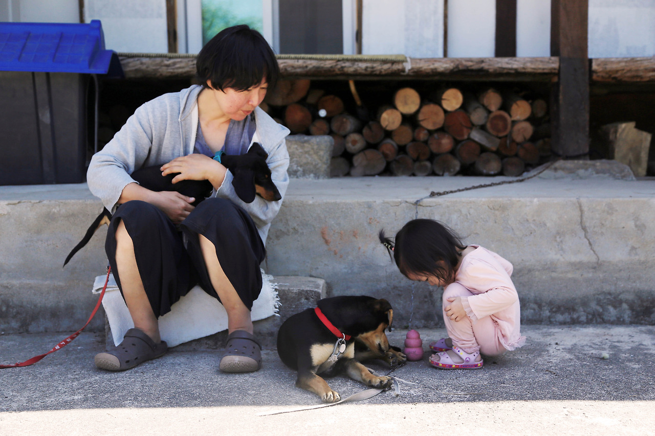 기적이 일어났다. 강아지들이 태린이에게 마음을 열었다. 그리고 진짜 친구가 됐다. 서로 이곳저곳 몸을 만지다가 뽀뽀도 해주고 나란히 앉아 같은 하늘을 멍하니 바라보기도 했다. 실망하지 않고 덤덤하게 그들 앞을 서성이던 내 딸. 어떤 믿음을 가지고 잭슨과 까미를 기다려주었을까. 살아있는 존재들과 교감하는 법은 어디서 어떻게 알았을까. 하루를 꼬박 기다려서 친해졌는데 집에 갈 때 두 녀석한테 인사하라고 했더니 울기는커녕 최선을 다해 손을 흔들어줬다. 언젠가 만날 인연인 것처럼. 지난 시간을 아쉬워하지 않고 오는 세월을 믿고 쓸 줄 아는 너일까. 법정 스님 말씀이 생각나던 순간이었다.