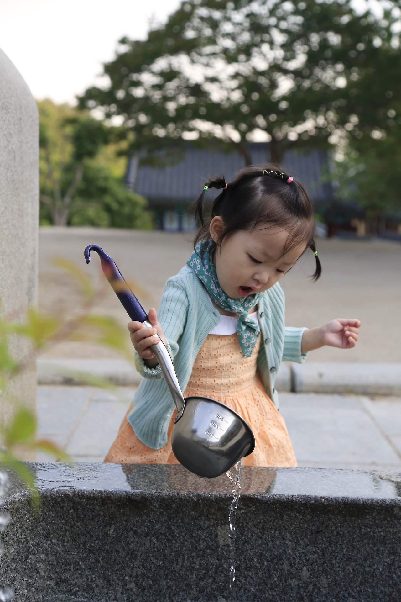 곤란한 상황이 오긴 왔다. 물만 보면 눈이 돌아가는 우리 딸이 놀잇감을 제대로 만났다. 절 약수터에서 바가지로 열심히 물을 퍼서 다른 바가지로 옮겨댔다. 사람들이 마셔야 할 바가지를 가지고 놀아도 눈치 주지 않는 어른들에게 감사 눈빛을 보내다가도 통제할 순간이 왔다. 바닥에 물 구덩이가 크게 생길 때쯤, 운동화는 물론 바지까지 홀라당 젖어버린 거다. 코감기에 걸린 아이가 잠시 불어오는 산바람에 상태가 나빠질까 봐 다른 놀이로 유혹했지만 끄떡도 하지 않았다. 상의만큼은 젖지 않았으면 하는 바람으로 머리 위로 들어 올려 이동했다. 결국 돌바닥에 누워 울고 불고 난리를 쳤다. 하필 대웅전 앞이었다. 남자 한 분이 그냥 놀게 두라고 태린이 편을 들어주셨는데 좀 억울했다. 30분 넘게 아이를 자유롭게 놓아주었던 나였지 않나. 아이가 물구덩이를 만들 정도로 놀았어도 그렇게 말씀해주시니 감사한 마음도 있었다.