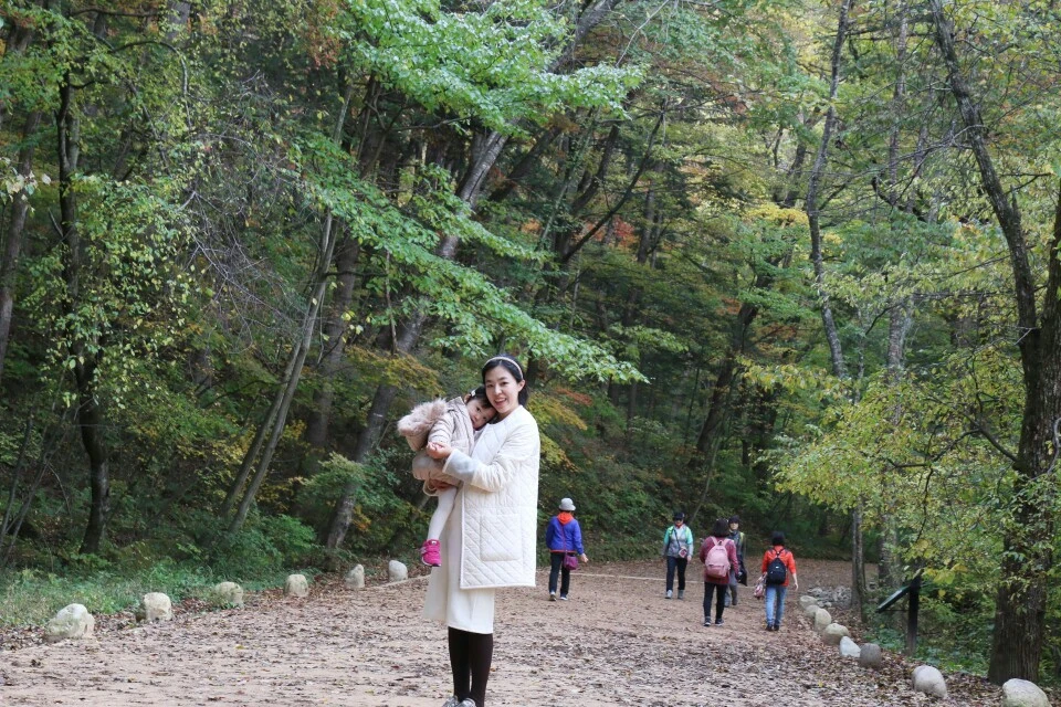 가을은 마음을 잔인하게 흔들었다. 바깥세상은 알록달록 예쁘게 변해가는데 나 혼자 어둠의 소굴로 들어가는 기분이었다. 폭탄 같은 감정을 내려놓을 곳이 필요했다. 바로 오대산! 신랑은 사진 강의로 가장 바쁠 시즌이라 혼자라도 가야겠다고 마음먹었다. 마침 소셜커머스에 유명한 리조트 비용이 착하게 나왔다. 매일 같이 만나 공동육아를 해온 엄마 세 명(자칭 '센스 있는 엄마들', 줄여서 '센맘')에게 같이 가려냐고 물어봤다. 우린 부부싸움, 시댁갈등, 육아 스트레스 등 시시콜콜한 일상을 털어놓으며 그날 그날 심정을 물어보지 않아도 알아주던 사이였다. 그때 용기 낸 사람이 준우 엄마였다. 두 아빠가 모인 자리에서 공식적인 허락(?)을 받고 설레는 마음으로 여행을 준비했다. 생각해 보니 태린이랑 훌쩍 떠난 여행 중, 신랑과 싸우지 않고 떠났던 유일한 행보였다.