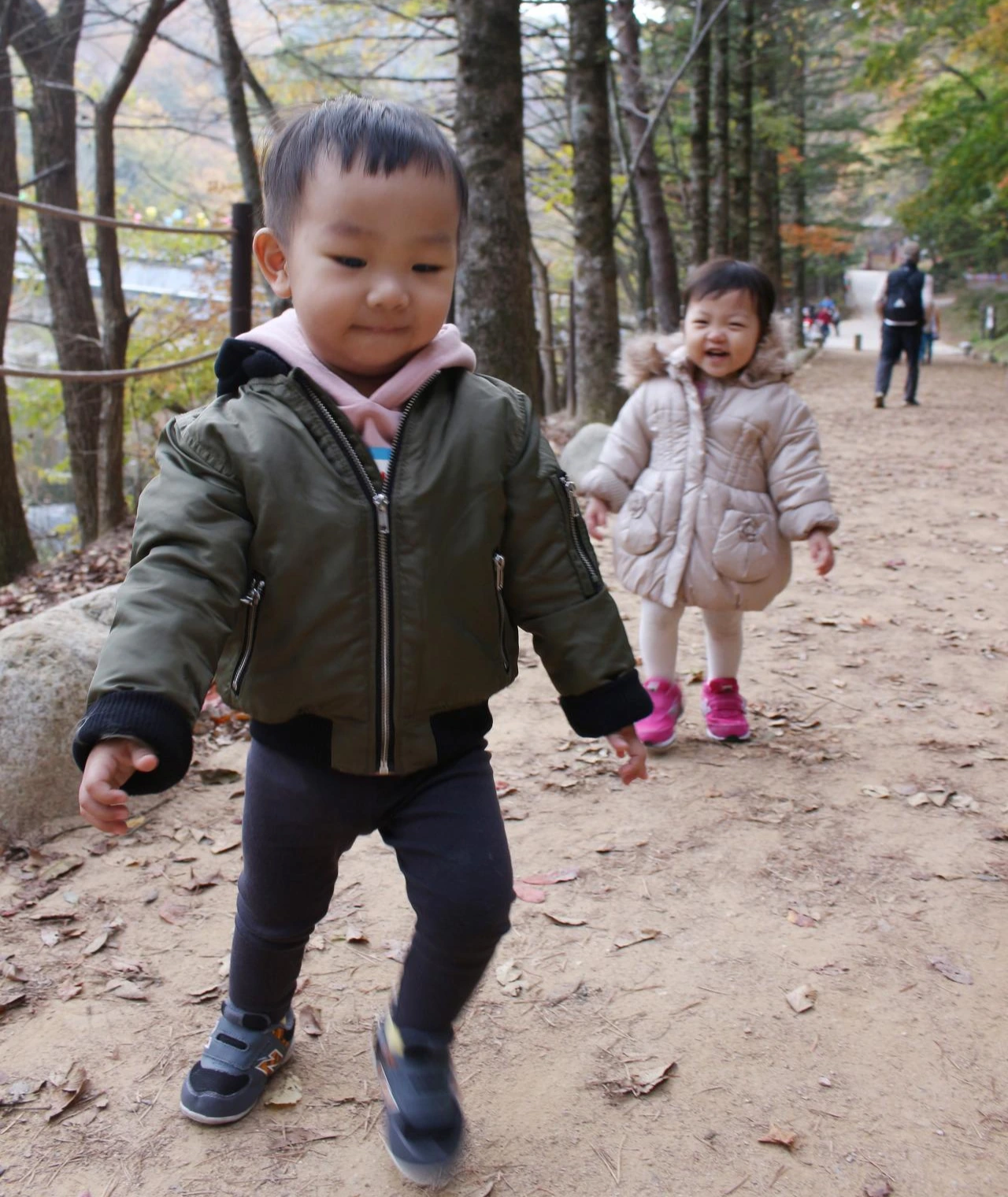 해질 무렵 월정사 도착했다. 주차요금이 생각보다 비싸서 놀랐다가도 높다란 나무를 바라보고 맑은 공기를 마시니 두 엄마는 감상에 빠졌다. 나뭇잎들이 슬슬 물들고 있었다. 더 늦기 전에 전나무숲길부터 갔다. 네 시간 동안 차 안에서 있던 아이들은 기다렸다는 듯 열심히 걸어 다녔다. 사람을 온전하게 다 받아주는 흙길을 밟으며 청량한 기운을 마음껏 받고 있었다. 사진 좀 찍어주려니 두 아이 모두 뻥튀기 삼매경에 빠졌다. 밥을 많이 안 먹더니 이 녀석들! 쌀살한 기운이 있어도 두 아이는 한적한 그 숲길을 종종거리며 즐겼다. 자연이 주는 선물을 그대로 받아들이고 있던 것이다. 그렇다. 이곳에 다시 온 이유는 오대산 기운을 다시 받기 위해서였다. 예전엔 선명하게 들렸던 딱따구리와 까치 소리까지 다시 듣는다면 반가운 마음에 좀 전까지 무슨 일이 있더라도 아무렇지 않게 삶을 이어갈 거라 믿었다.