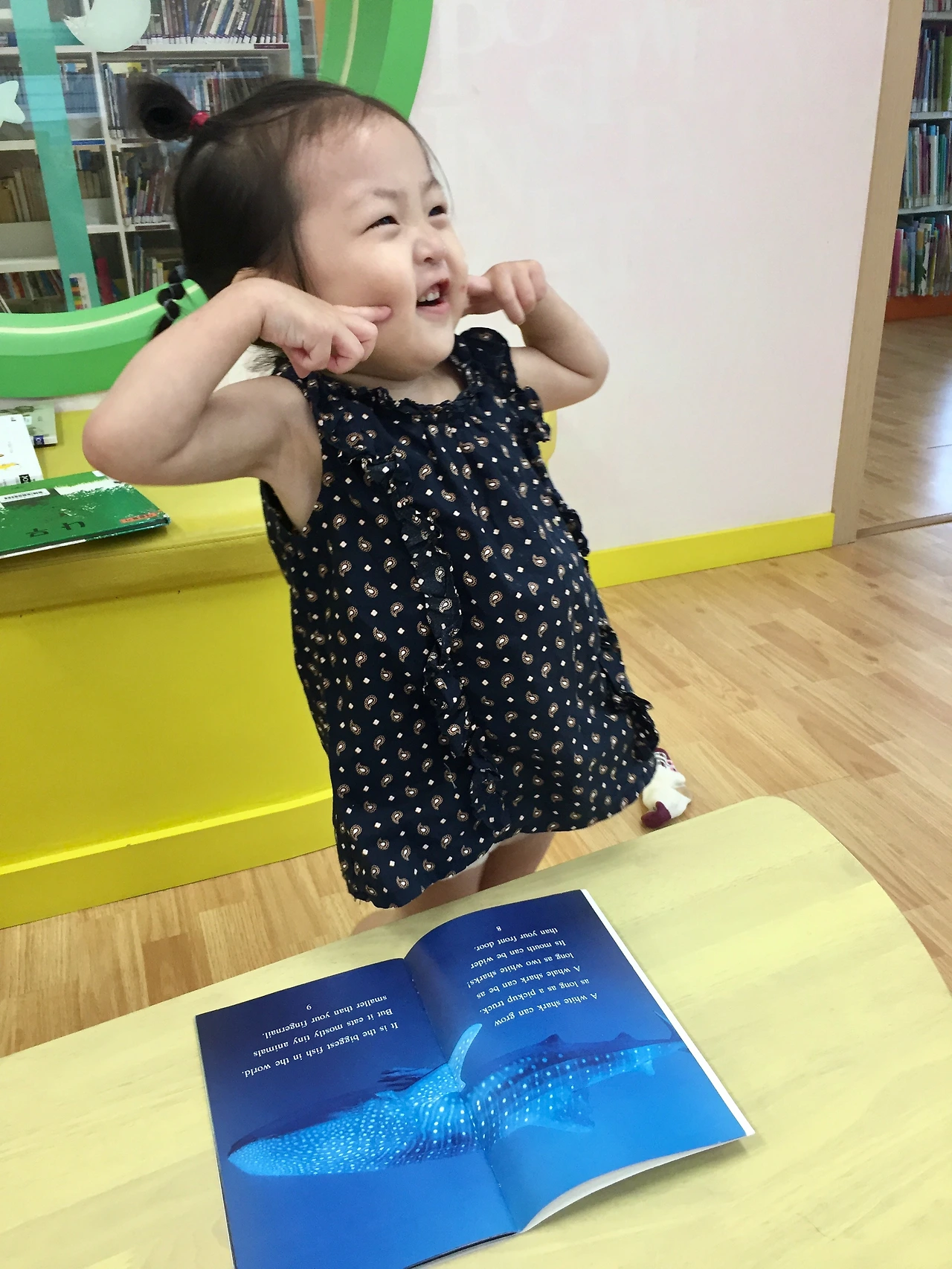도서관을 다니기 시작한 얼마 뒤부터 자신이 좋아하는 책을 골라 혼자 읽기 시작했다. 재미있는 사실은 그때그때 한창 관심 가진 분야 책만 골라 있는다는 것이다. 세 돌 전후로는 동물 그림만 보면 무조건 들고 와서 읽어댔다. "우아우아~" 감탄사도 유별난데 흉내내기도 바빴다. 그다음엔 바다생물들 이미지만 보고 레벨에 맞지 않은 책도 열심히 찾아왔다. 읽었던 책도 많이 꺼내 온다. 올해 초부터 책육아를 본격적으로 시작하면서 책을 많이 빌려봤는데 이전에 봤던 책을 많이 찾아왔다. 지난 봄부터 네이버 키즈북토리에서 꿈책맘이 진행하는 한글그림책 프로젝트와 령돌맘이 진행하는 영어동화 프로젝트를 열심히 참여하고 있다. 프로젝트 관련 도서는 거의 도서관에서 대출해서 보고 있는데 짧게는 1주일 길게는 2주 동안 빌려 우리 책처럼 읽힌다. 프로젝트 자료로 독후활동까지 해서 그런지 몰입도가 크다.