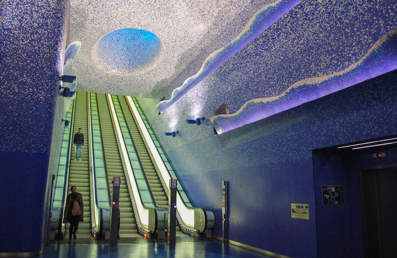 나폴리의 지하철역은 마치 하나의 아트갤러리를 연상시킨다. 13개의 나폴리의 역이 각각 아름다운 디자인으로 구성되어 있다. 이 도시의 지하철 재개발 프로젝트를 위해 90여명의 현지 및 국제 아티스트들이 참여했는데 한국에서도 잘 알려진 산업디자이너 카림 라시드도 그 중 한 사람이다.