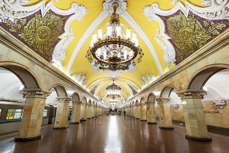 1935년에 개장된 모스크바 지하철역은 단순한 교통수단이 아니다. 깊은 지하로 하염없이 내려가면 호화로운 지하 세계가 펼쳐진다. 모스크바의 지하철역은 국내 지하철과는 다르게 같은 디자인으로 된 곳이 거의 없다. 그 지역의 역사에 어울리는 역 이름을 짓고, 거기에 맞는 벽화, 샹들리에, 모자이크, 조각품, 벽돌 등으로 꾸며져 있다. 이 아름다운 지하철은 현재 매일 800만명이 넘는 이용객들을 맞이하고 있으며 세계에서 가장 분주한 지하철 시스템 중 하나이기도 하다.