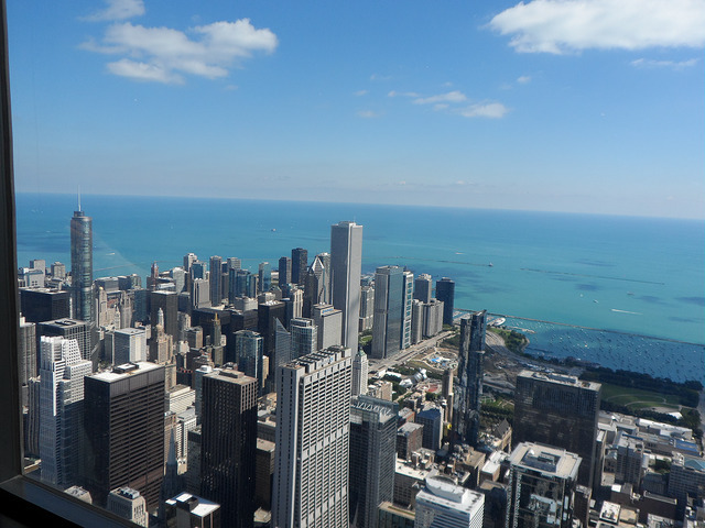 첫번째, 시카고를 살펴보자. 시카고의 전망을 한눈에 볼 수 있는 곳은 두군데다. 94층의 존 핸콕 타워에 있는 360 시카고는 시카고 트리뷴이 인정하는 시카고 최고의 전망대이다. 하지만 좀 더 모험을 좋아하는 사람들이라면 스카이덱 시카고의 더 레지 전망대(The Ledge)에 발을 내밀어 보자. 더 레지는 세계 최고 높이 건물 중 하나로 꼽히는 윌리스 타워 103층에서 몇 미터 앞으로 확장하여 전 유리로 만든 발코니로 관광객들에게 마치 난간 위에 있는 듯한 아찔한 경험을 선사한다.