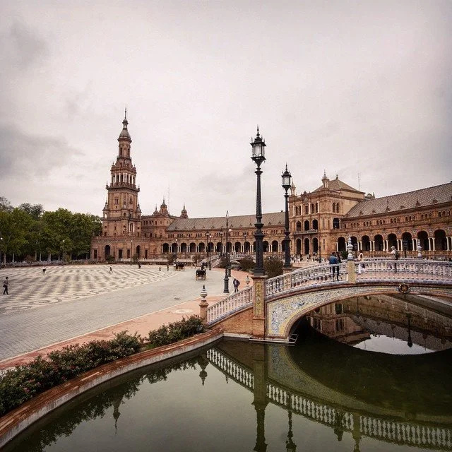 스페인 광장은 영화와 광고 촬영지로 유명한 스페인의 대표적인 랜드마크다. 광장에 있는 건축물은 좌우 대칭으로 지어진 반원형 건물로 중앙에는 분수대도 있어 고풍스럽고 웅장한 분위기를 자랑한다. 광장 앞쪽으로 스페인 국기가 그려진 4개의 다리가 있는데, 각각 스페인 4대 왕궁을 상징한다. 스페인 광장 앞으로 운하도 있어 배를 타고 여유롭게 주변 풍경을 감상하기에도 좋다. 무엇보다 일몰 스팟으로도 유명해 시간적 여유가 된다면 선선한 저녁에 한 번 더 찾아보기를 추천한다. 또한 스페인 광장에서는 플라멩코 길거리 공연도 감상이 가능하니 참고하자.