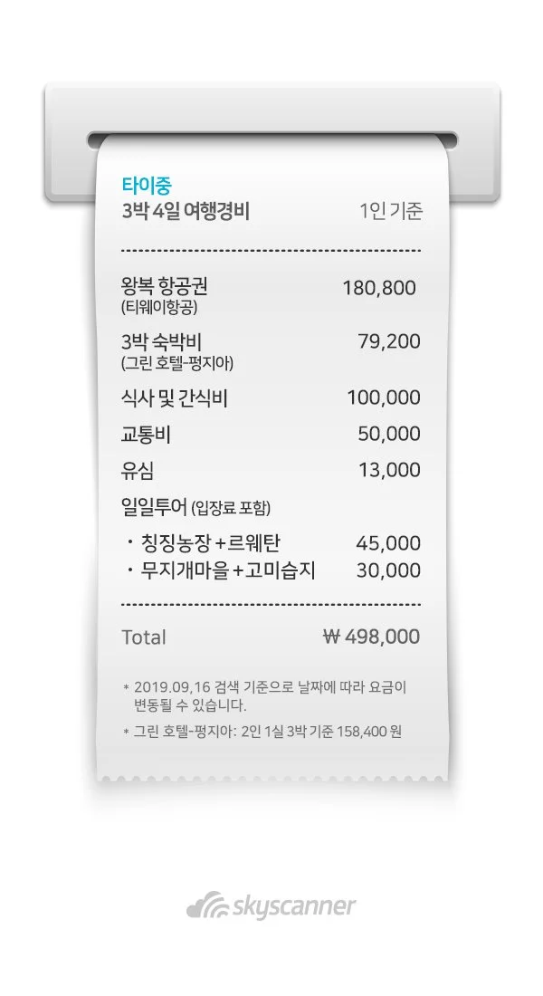 타이중은 화려한 도심과 순수한 자연의 양면을 동시에 만날 수 있는 도시다. 도심에서는 화려한 빌딩 숲 가운데서 감각미 넘치는 푸른 정원을 만날 수 있으며, 대만 특유의 예술적 감각을 한껏 느낄 수 있는 핫플레이스가 많다. 반면, 도심에서 조금만 벗어나면 아름답고 순수한 경관이 잘 보존되어 있어 자연의 웅장함과 아름다움을 느끼며 힐링하기도 좋다. 스카이스캐너가 대만 타이중여행 3박 4일 일정과 경비를 소개하니 참고하여 여행 계획을 세워보자.