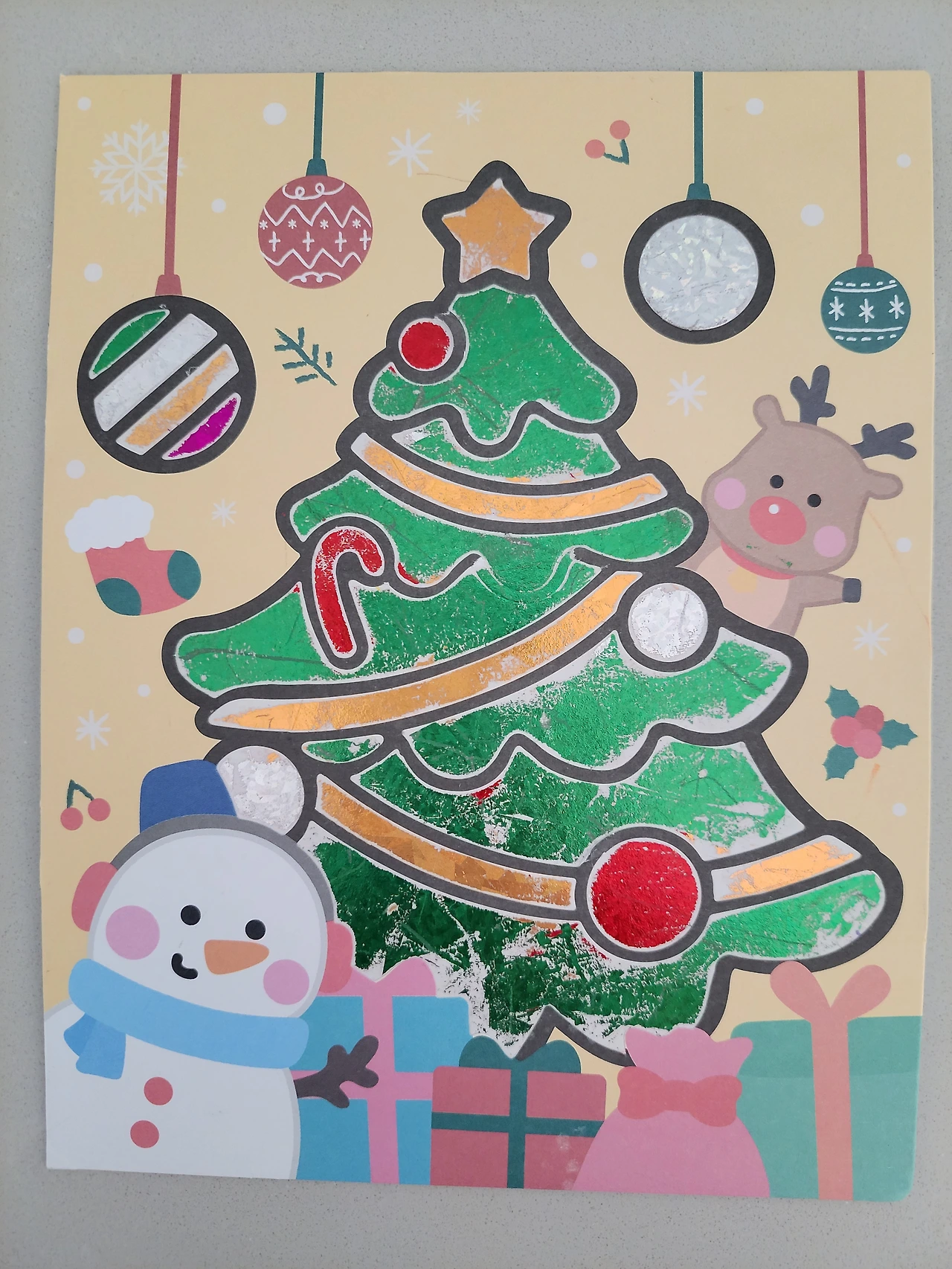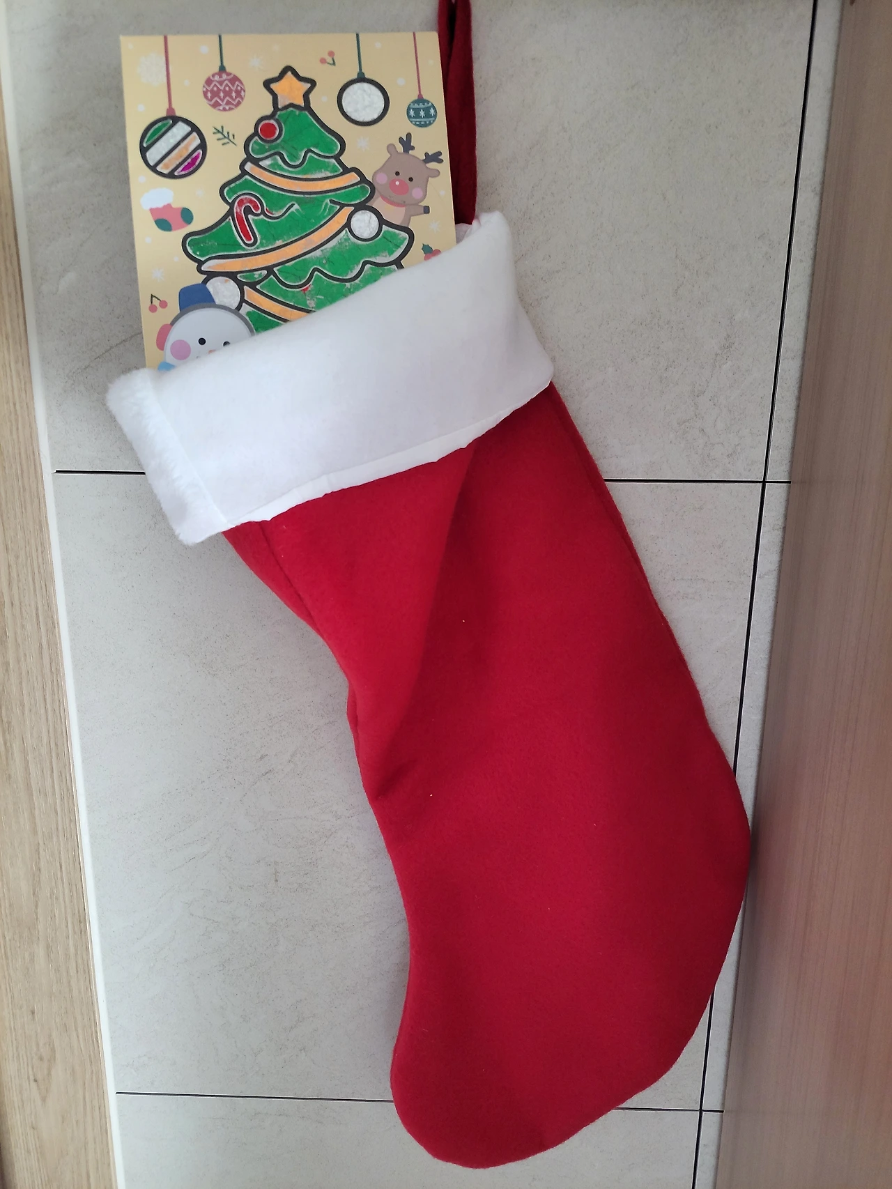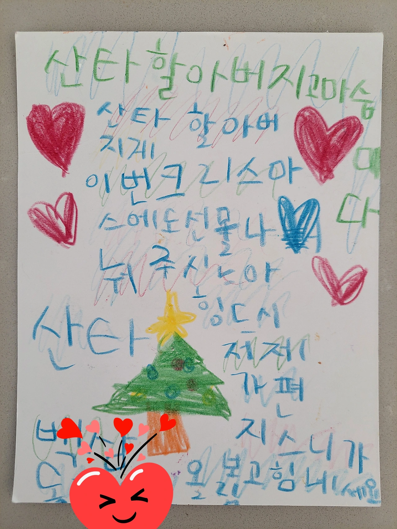아이는 선물을 주시는 산타할아버지께 감사카드를 써야겠다며 정성껏 카드를 만들었다. 산타할아버지가 선물 넣을 때 잘 보고 갖고 가시라며 양말에 꽂아두는 것도 잊지 않았다.
