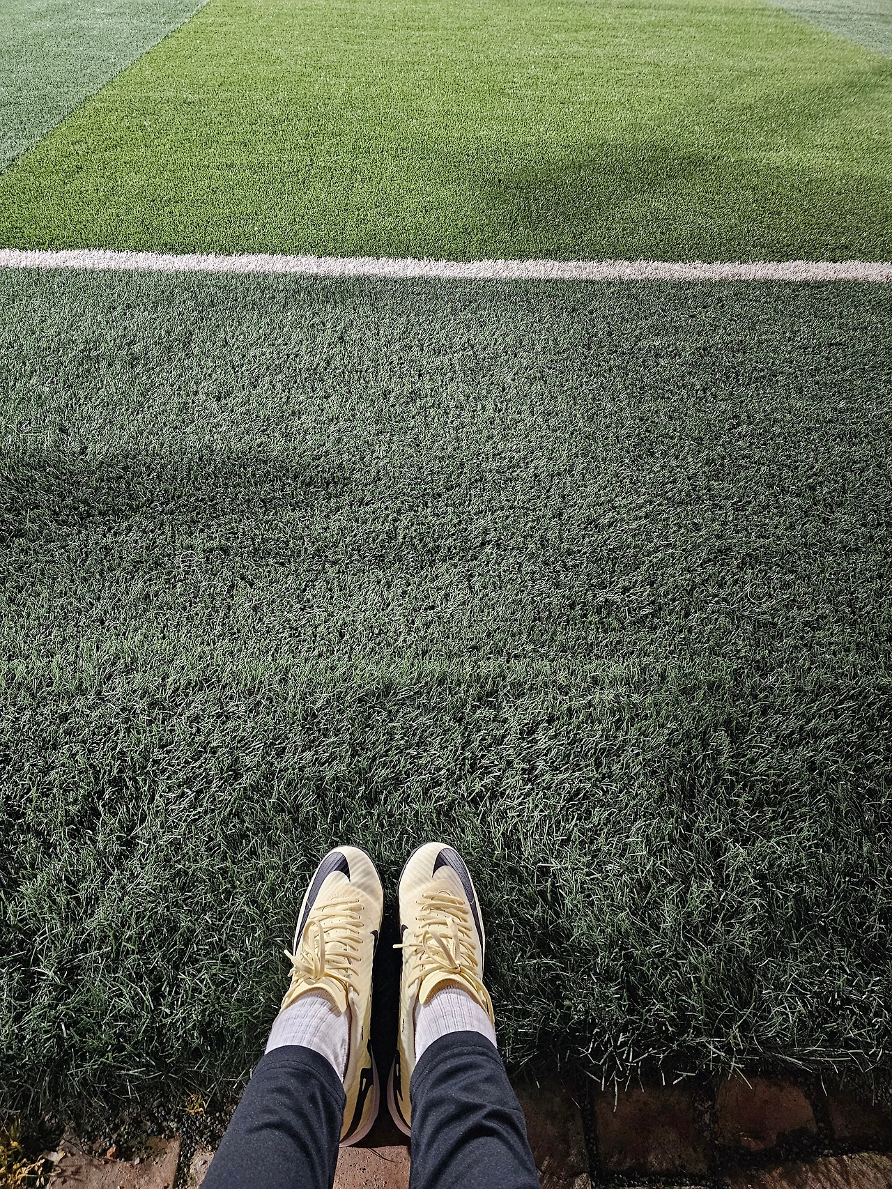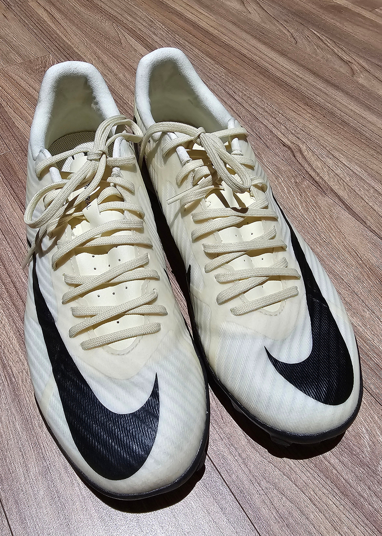 그다음 주 운동 전까지 풋살화도 사야 하고, 당장 입을 운동복도 필요해서 싫어라 하는 인터넷 쇼핑을 몇 시간이나 해야 했는데 특히 풋살화를 고르는 것이 힘들었다. 발볼이 넓은 편이라 그냥 운동화를 신어도 발가락이 아프곤 해서 어떤 풋살화를 사야 하는지 검색의 검색을 거쳐 고른 것이 아래의 풋살화!(나이키 풋살화 머큐리얼 베이퍼 15 아카데미) 크게 사라는 조언대로 평소 사이즈보다 +10 해서 샀는데 앞부분이 꽤 남아서 착화감도 모양도 썩 마음에 들지가 않았다. 그래도 발이 안 아픈 것으로 만족하고 2회 차 운동 때부터 신고 뛰었다.