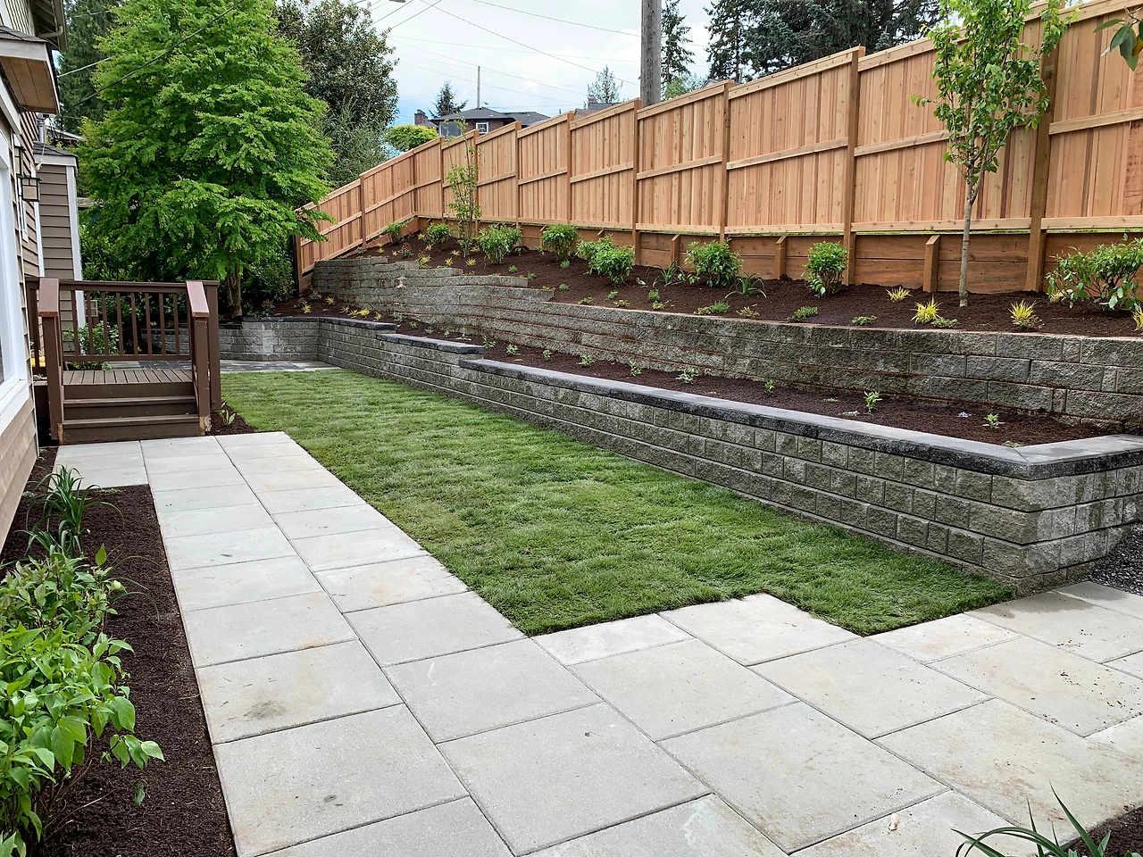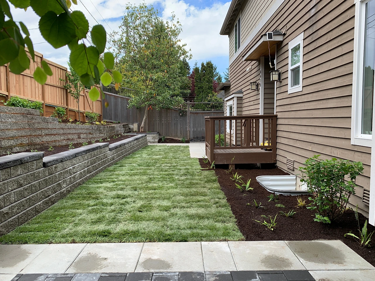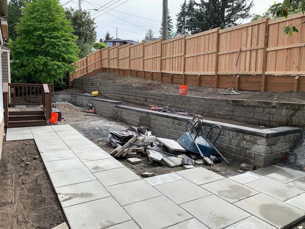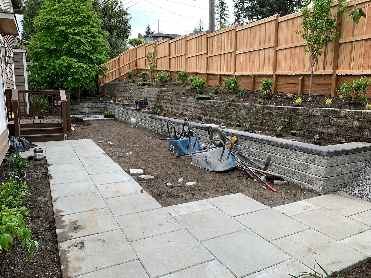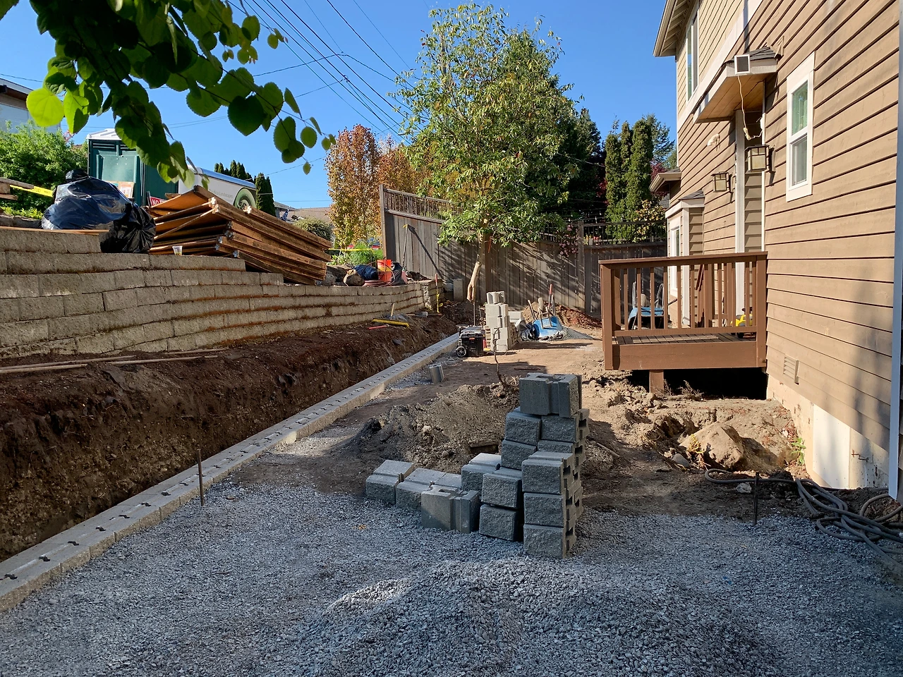 공사가 시작되기 전. 붉은 색 돌과 관리되지 않은 잡초들, 그리고 하나 같이 관리하기 어려운 나무들만 가득하다. 1주차 첫째날. 붉은 벽돌을 모두 제거하고 나무들을 잘랐다. 1주차 둘째날. 나무들과 돌들이 모두 없어졌다. 1주차 셋째날. 앞쪽 벽 설치를 위해서 흙이 제거되었다. 이로써 더 넓은 공간을 얻게 되었다. 1주차 넷째날. 입구쪽 땅 평탄화가 진행되면서 흙이 더 제거되었다. 1주차 다섯째날. 벽 설치를 위해서 땅을 파고 돌이 깔렸다. 2주차 첫째날. 앞쪽 벽이 조금씩 설치가 되고 울타리가 허물어졌다. 2주차 둘째날. 앞쪽 벽이 좀 더 모양을 갖추었고 새 울타리 설치를 위한 기둥이 세워졌다. 2주차 셋째날. 앞쪽 벽이 거의 완성이 되었다. 2주차 넷째날. 울타리 바깥 흙을 지탱할 버팀목과 입구쪽 나무 밑에 벽이 설치되고 현관 계단이 조정되었다. 2주차 다섯째날. 모든 벽이 완성되고 울타리 2차 버팀목이 설치되고 현관쪽 돌이 모두 제거되었다. 3주차 첫째날. 울타리 틀이 완성되고 평탄화 및 지대를 조금 높이기 위해서 흙이 추가되었다. 3주차 둘째날. 입구와 현관을 연결하는 블럭이 설치되고 울타리가 완성되었다. 3주차 셋째날. 파티오쪽 블럭이 설치되고 울타리 문이 설치되었다. 3주차 넷째날. 불필요한 흙들과 자재들이 정리되고 1차적으로 식물들이 심겼다. 또한 지하로 향하는 부분이 정리되었다. 3주차 다섯째날. 잔디가 깔리고 모든 식물들이 자리를 잡았다. 바깥은 지저분한 돌과 관리되지 않는 잡초로 가득했는데 잔디로 대체됐다. 위와 같이 공사과 완료된 후 며칠이 지난 뒤 입구 쪽 계단이 완성되고 그 뒤 몇 주가 지난 후에 입구 쪽 계단에 손잡이가 설치되면서 모든 공사가 완료되었다.