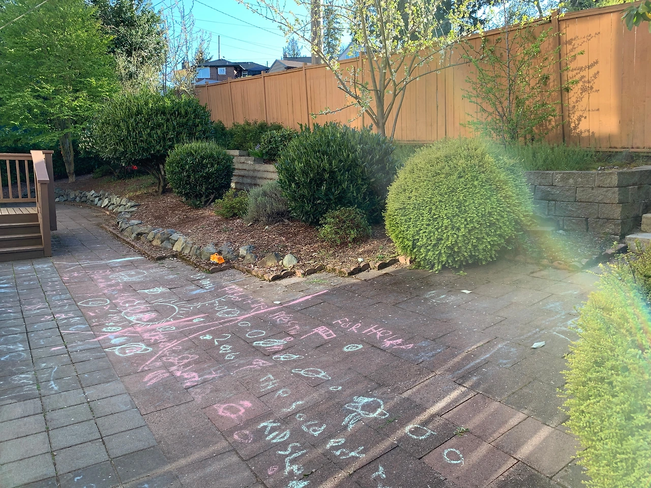 지금은 공사 후 2개월이 넘는 시간이 지났는데 죽을 식물은 죽고 살 식물들은 무럭무럭 자라는 중이다. 잔디도 자리를 잡아서 초록빛을 내다가 지금은 여름이라 노랗게 변해가고 있다. 그리고 아이의 장난감으로 가득하다.