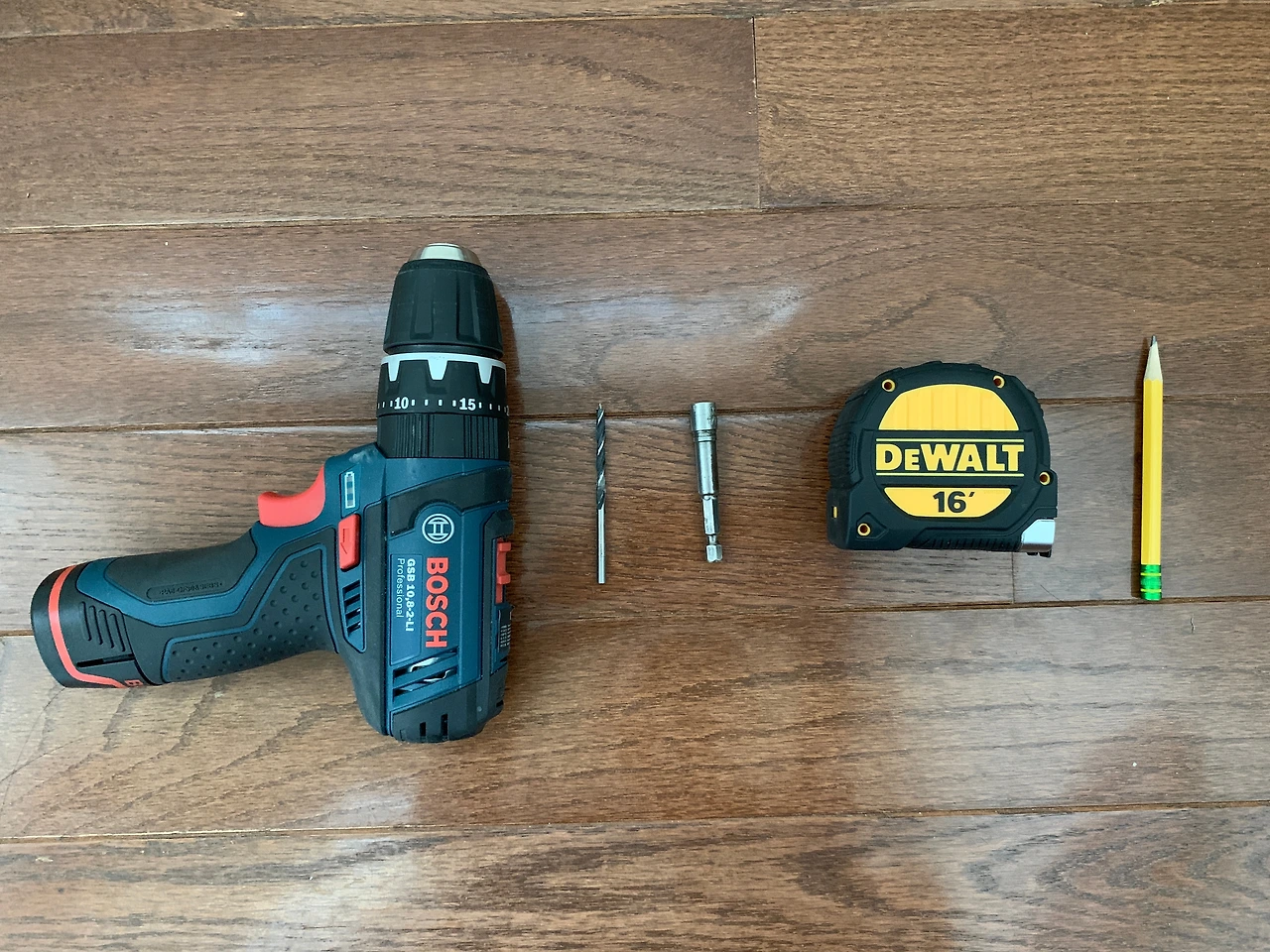 준비물: 전동 드릴, 4mm 드릴 비트, 줄자, 연필