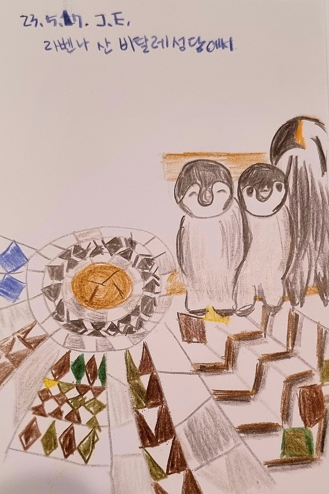 여행에 있어서 현지 음식을 먹고 즐기는 것이 여행의 묘미라고 생각하는 남편 펭귄과 음식보다는 그곳의 기념이 될 만한 것을 작은 것이라도 소유하고자 하는 욕구를 충족시키며 기념품을 사면서 기뻐하는 나, 돌아와서 그걸 볼 때마다 그 여행을 떠올리는 나를 보며, 남편 펭귄은 우리 둘은 여행에 대한 생각이 다르다며 다음엔 아이들 펭귄이나 친구랑 여행을 다녀오라며 놀리듯 진심을 담아 말하곤 한다. 그런데 이렇게 가끔 사치를 부리며 현지 음식점에서 정성스러운 음식을 만나면 기억에 남아 좋다.-그러니 남편 펭귄아, 난 너랑 여행을 다시 갈 거야-이렇게 생각이 서로 다름에도 우리가 함께 한 달 반을 잘 다녀올 수 있었던 것은 무엇 때문이었을까 생각해 본다. 그건 아마도 '펭귄 가족'이라서.... 내리는 비를 막아주는 마음이 견고해서 그렇지 않을까.