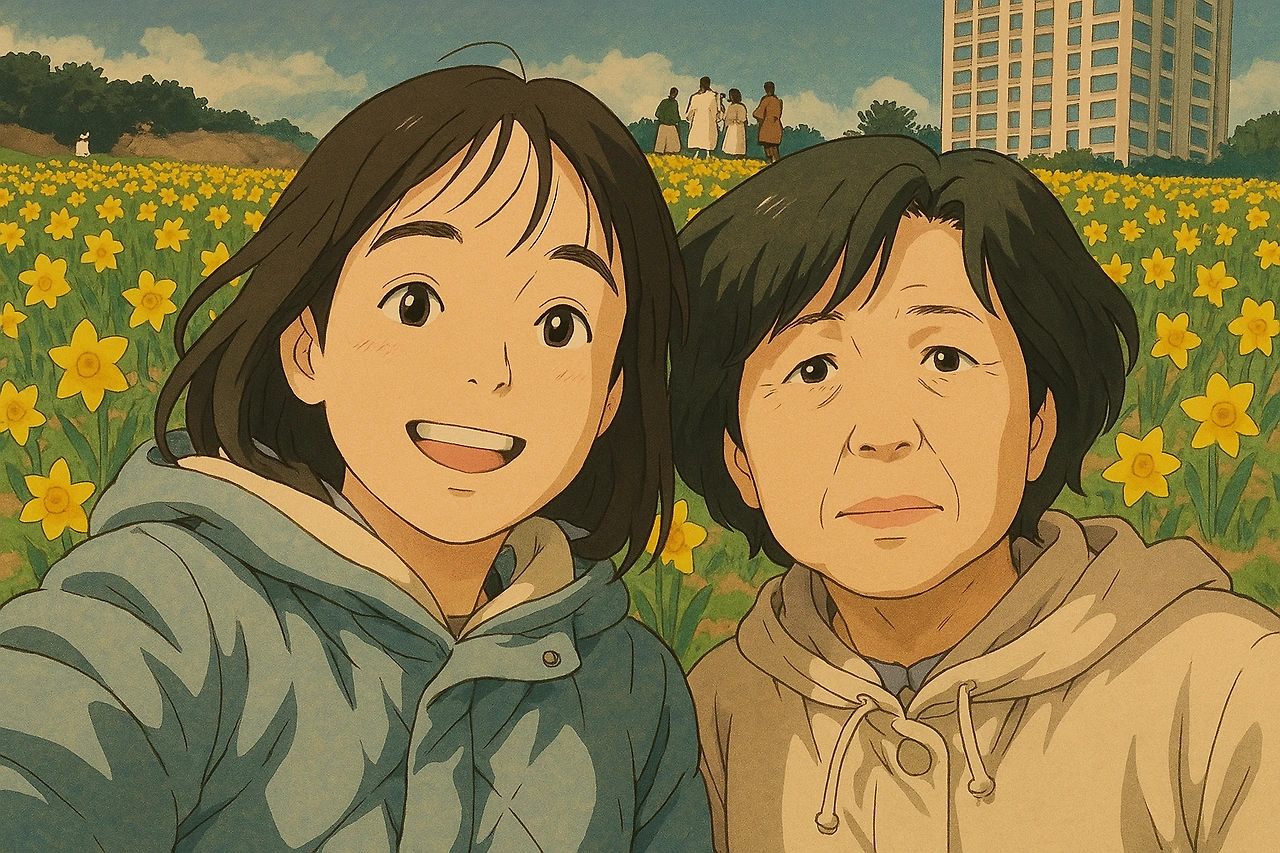 지난 주말 미리 엄마 생일을 축하해 주며, 함께 산책하며 사진을 하나 찍었다. 그 사진을 요즘 유행하는 인공지능이 그려주는 그림으로 바꿔봤더니 엄마가 너무 나이 들게 그려져, 인공지능이 바보 갔다고 생각했다. 그런데 사진을 자세히 보니 엄마의 주름이 깊었다. 꽃이 지는 것 같은 얼굴로 내 옆에 있는 엄마를 보니 마음이 슬펐다. 사실 그 옆에서 해맑게 웃는 내 모습과 엄마가 비교가 돼 더 울고 싶어졌다.