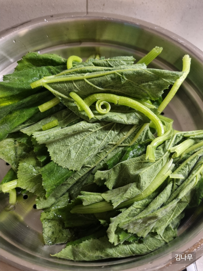 그리고 이젠 호박잎을 따서 줄기를 손질해 기다리시는 분이 한 분 더 계신다. 내 시어머니, 여름이면 호박잎을 챙겨두신다. 나는 냉큼 호박잎을 받아와 이렇게 사진을 찍어 양가 어머니께 보낸다. 나는 꺼칠한 호박잎에서 사랑을 먹는다. 내 입속으로 들어가는 호박잎을 바라보는 딸도 하나 시도해 본다.