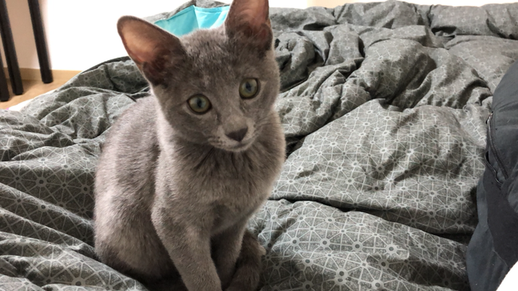 러시안블루라는 종 자체가 사람을 좋아하는 사회적 성격이기도 하지만 이 아이 자체의 성격도 활발하고 또 사람을 굉장히 따르는 편이다.