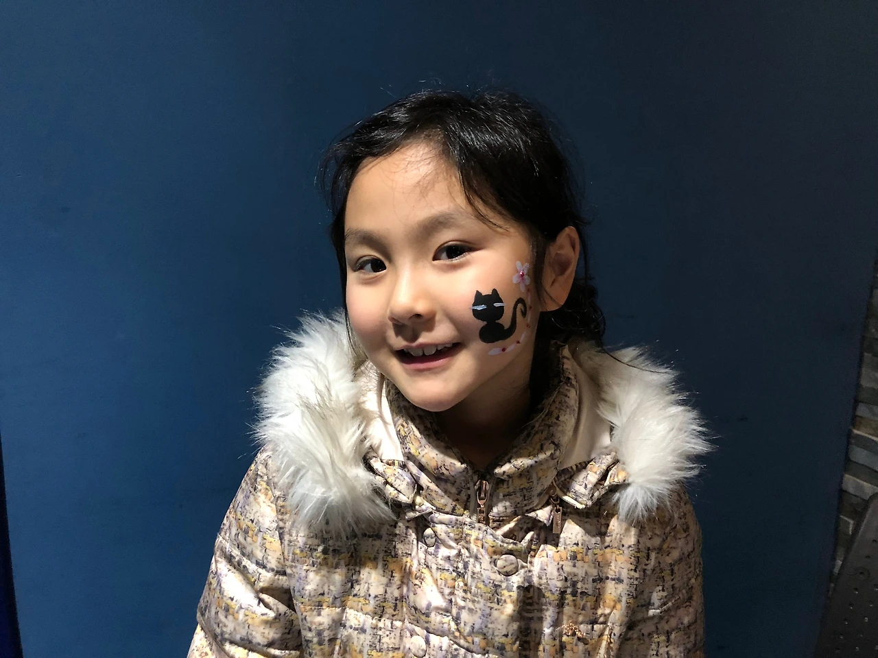 나인이의 널찍한 볼에 이쁜 검정고양이가 나타났어요.