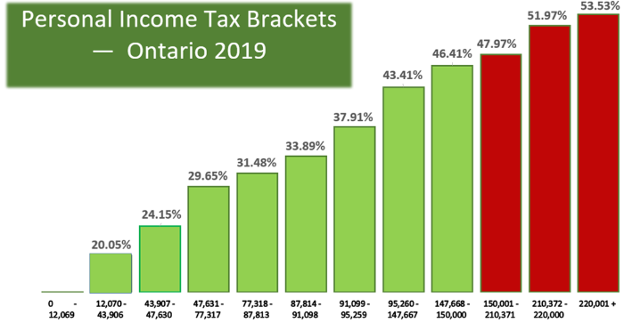 온타리오주 연봉별 소득세율표 2019(좌) 한국 연봉별 소득세율표 2020(우)