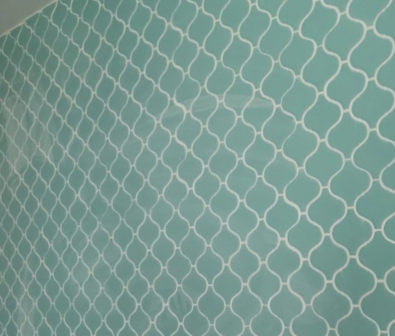 하늘색, 촌스러운 타일 바닥을 때 한 톨 안 보이도록 닦으셨다.