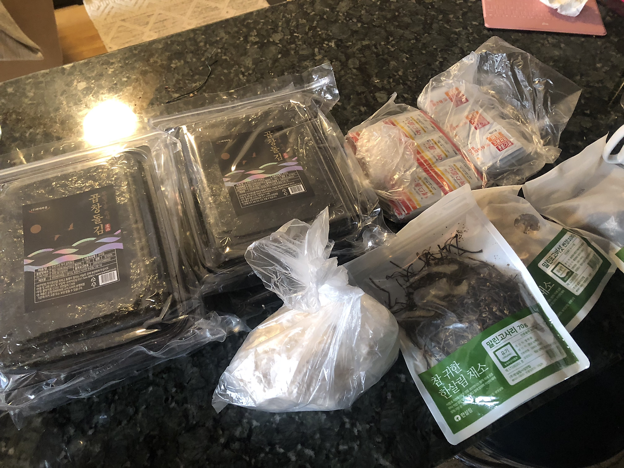 작년 소포에 처음으로 등장한 김은 그 큰 부피와 양에 ‘헉’ 소리를 나게 했다. 룸메이트와 좁은 부엌을 나눠 쓰던 때라 창고공간이 부족해 신발장에 넣어두어야 했을 만큼, 그 양이 어마어마했다.