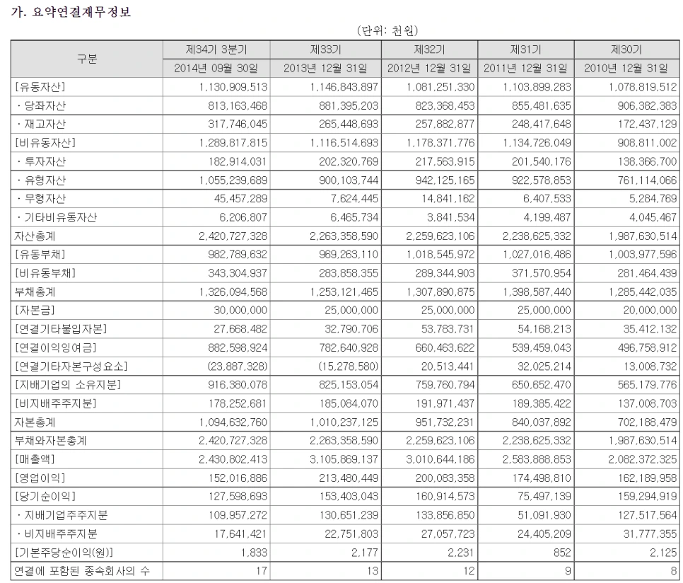 내가 주목하는 지수는 ROE이다. ROE는 (당기순이익/자기자본*100)으로 계산하며, 기업의 경영효율에 대한 평가 지표와 관계가 높다. 다시 말해 기업의 자기자본에 비해 얼마의 순이익을 냈는지에 대한 지표인데, 이 지표가 중요한 이유는 최근 같은 금리 변동기에는 특히 더 주목해야 할 것 같다. 성우하이텍의 2021년 추정 ROE는 2.9%인데 분기별로는 순이익이 개선되고 있는 흐름이지만 연평균의 수치로 봤을 때는 현재 상승하는 시중금리에 비교해볼 때 아쉬운 ROE를 보이고 있다. 직관적으로 생각했을 때 그냥 은행에 돈을 보관하고 있는 것과 차이가 얼마없는 결과로 만약 이를 유심히 본 투자자라면 이 회사에는 투자하지 않을 것 같다. 실례로 성우하이텍 주가가 15,000원이 넘었던 2014년의 재무제표를 살펴보면 성우하이텍의 ROE 감소가 더 더욱 눈에 띈다. 당기순이익을 단순 자본총계로 나눈 지표를 단순 계산해 봐도 당시 12~15% 이상의 ROE를 보였다. 2014년도 국채 10년 물의 금리가 3.2% 수준이었음을 감안할 때, 갭이가 10%에 육박할 정도니 당시의 주가 퍼포먼스는 흔히 말하는 '차화정 장세'가 아니라도 설명이 가능한 수준이었다.