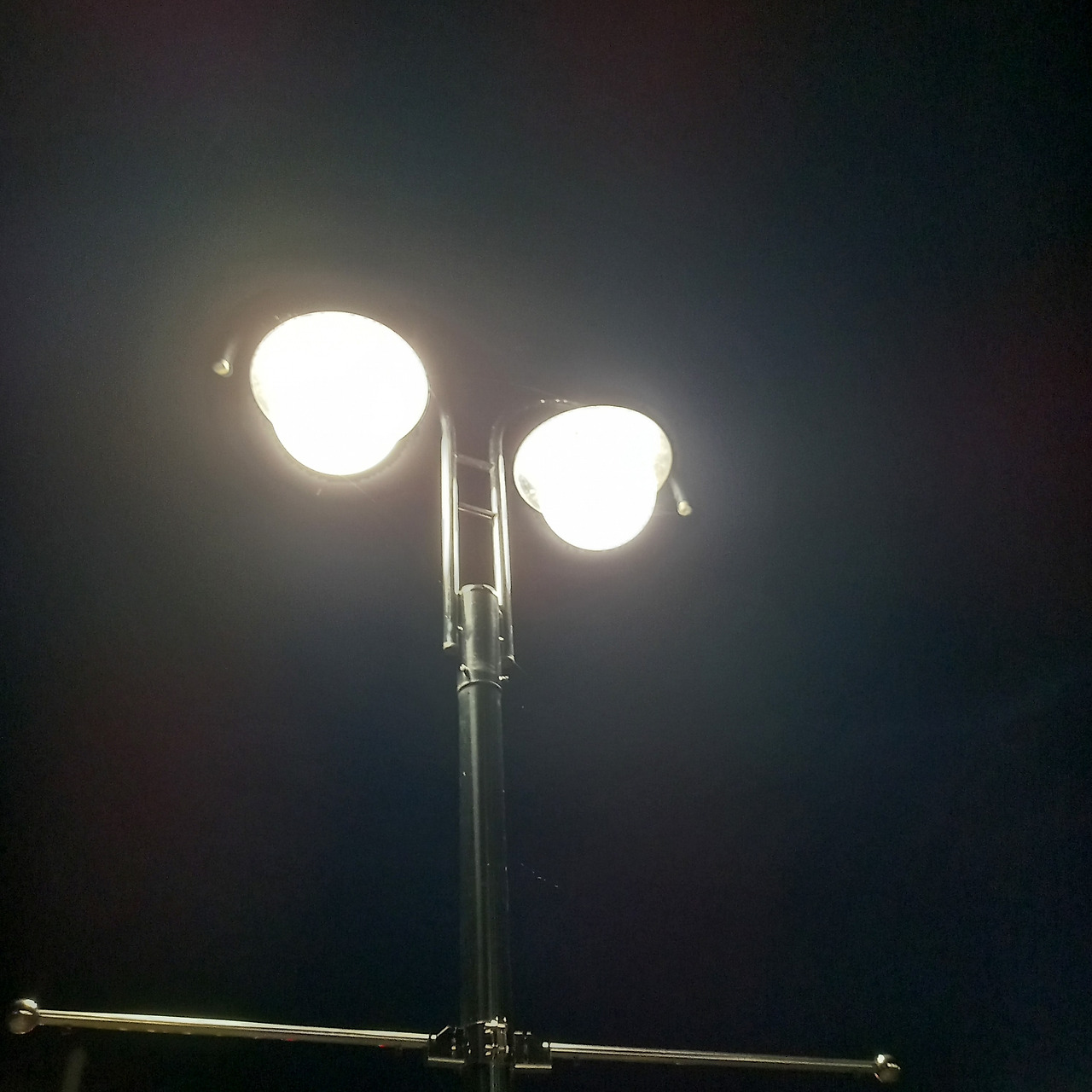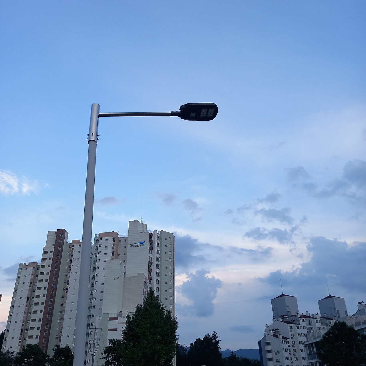 어두운 길 위, 가로등 하나가 서 있다.